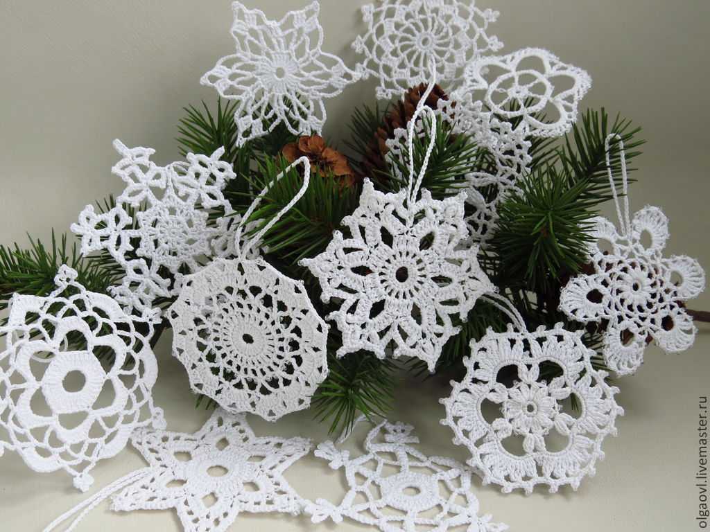 Если вы любите оформлять потолки, то как правило их оформляют при помощи каких-то свисающих элементов. Это могут быть те же снежинки, которые можно прикрепить к нитям дождя, капроновым или обычным нитям. Если нити длинные, то их можно украсить еще и дополнительными декоративными элементами.