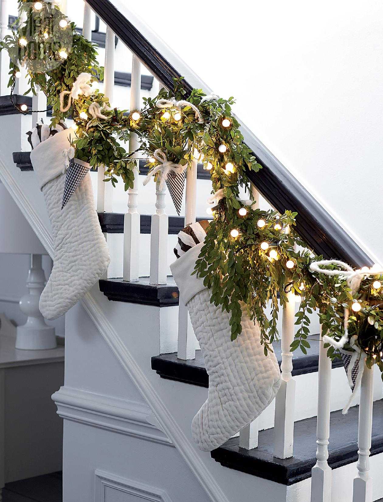 Стены — самое подходящее место для сезонного тематического декора. На них наверняка найдётся свободное место, где вы сможете сделать новогоднюю аппликацию из временных декоративных наклеек или оригинальное панно в виде ёлки из шариков и гирлянд. Используйте декоративные техники и материалы, которые по окончании праздников можно будет легко удалить без вреда для поверхностей.