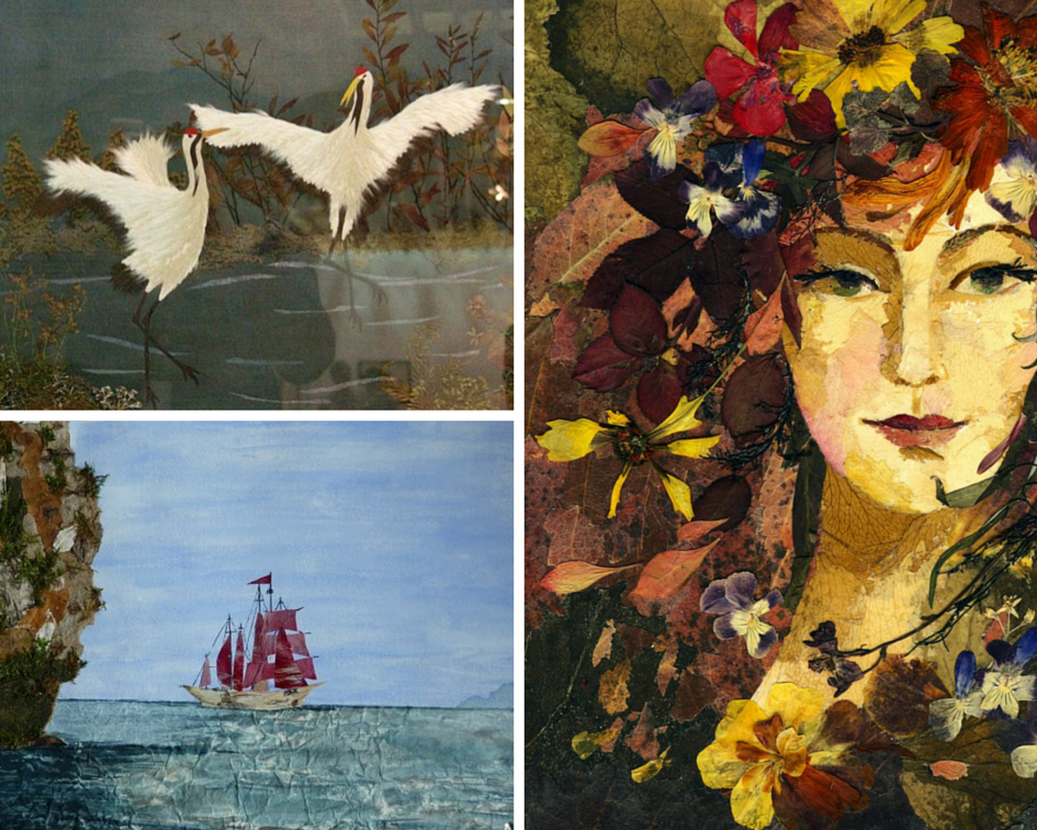 Картины из цветов и листьев делать достаточно просто. Следует только определиться с типом аппликации. Она может быть накладной, симметричной, силуэтной, ленточной и модульной.