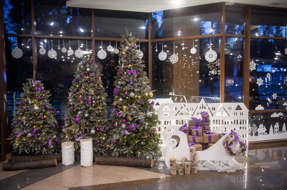 При выборе стиля оформления стоит учитывать тип и размер сосны. Если она живая, то необходимо заранее позаботиться о крестовине: чем больше дерево, тем крепче его нужно держать. И кстати! Нижние ветки сосны растут почти горизонтально. Стоит украшать их не тяжелыми игрушками, во избежание деформации.