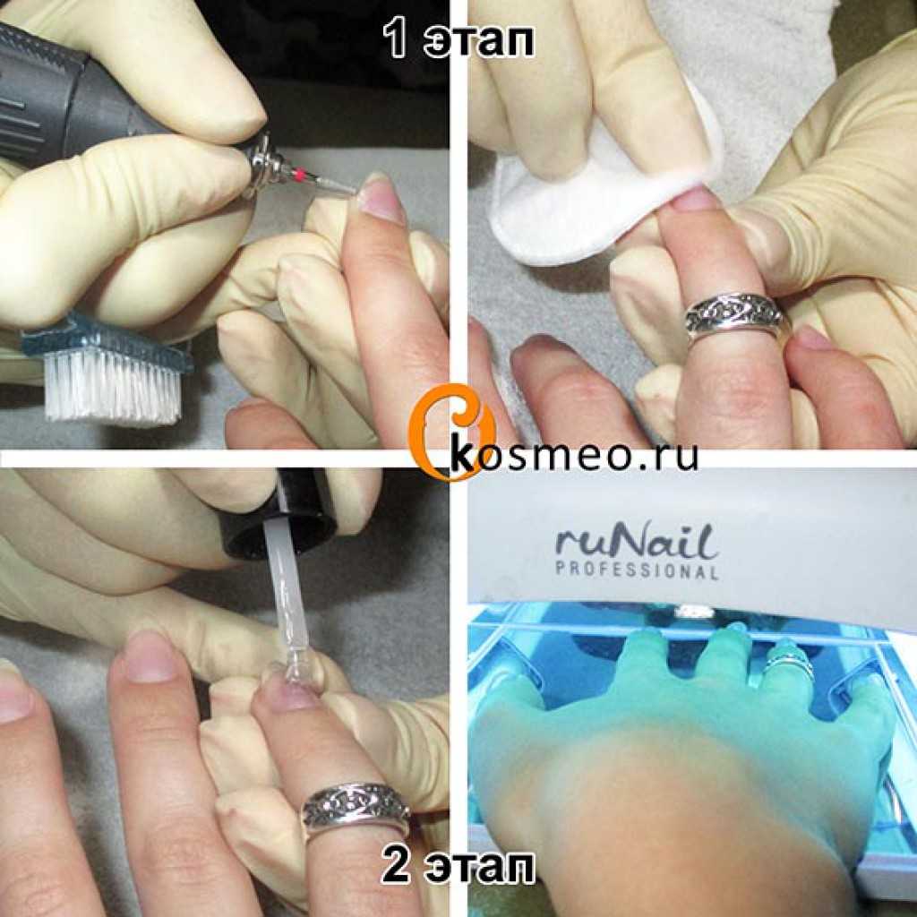 Если использовать гель-лак, требующий полимеризации в УФ-лампе, нанесение каждого нового слоя следует сопровождать сушкой ногтей.