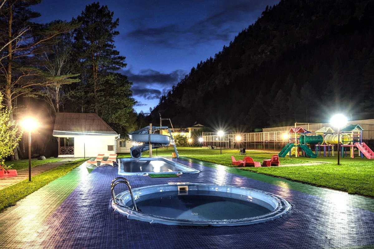 Пятизвездочная база отдыха «Собственная усадьба» – это безупречный приют для усталых изыскателей Алтайского края. По мнению отдыхающих, «Собственная усадьба» самая занимательная база на берегу речки Катуни для приятного отдыха с детьми. Порядочное гарантийное обслуживание, отзывчивый штат сотрудников, прекрасная территория, уютные домики, вкусное питание дают возможность полностью получить удовольствие приятным отдыхом в Алтайском крае. Три бассейна с подогревом, пару бань, альтанки с мангалом возле домиков – все по подходящей цене, которая зависит от сезона, категории проживания и может меняться от 2000 до 3500 рублей.