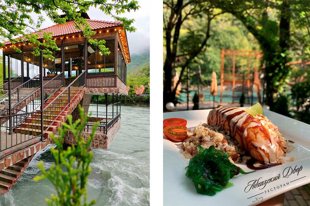 Где отведать национальную кухню с местным колоритом: «Абхазский двор» по пути на озеро Рица, ресторан «Нартаа» в Сухуме (попробуй мамалыгу со свеженьким сулугуни, мандариновый фреш и местное пиво).