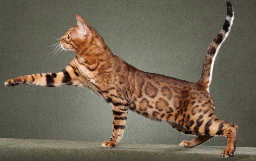 Кошка с леопардовым окрасом отличается своим величественным станом и грациозностью. Они весьма общительны, очень нежные и чуткие животные. Как ни странно, эти кошки любят принимать ванны и сидеть на плечах у хозяина.
