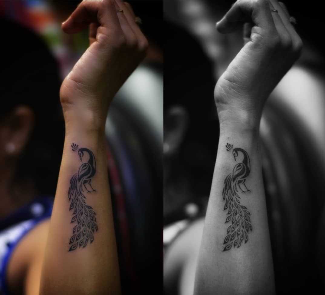 Татуировки в виде павлинов украшают руки девушек у разных народов, символизируя солнце.