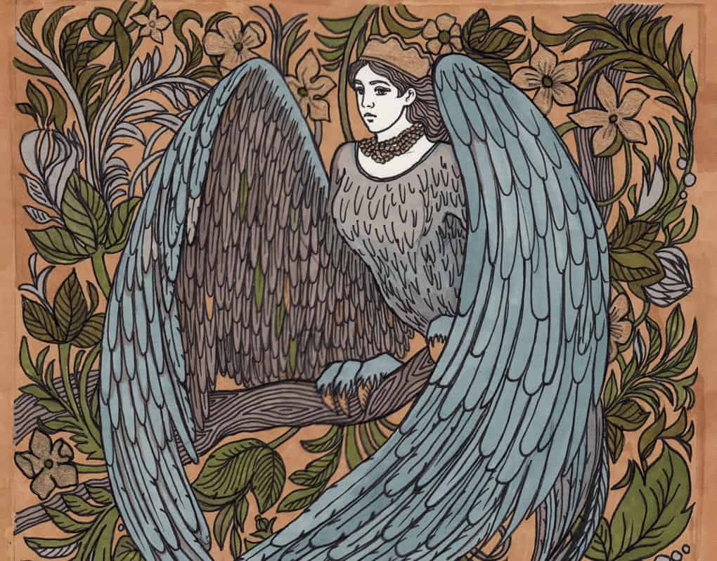 Эта удивительная птица обитает в славянском раю. О ней часто упоминается в русских духовных стихах, легендах и преданиях. Ее пение так прекрасно, что услышав его, человек забывает обо всем на свете. Говорят, что в этот момент у него душа выходит из тела, и его покидает разум.