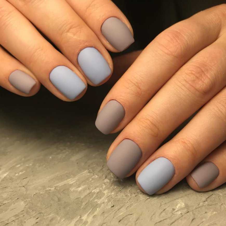 Для осеннего маникюра характерны не только рыжие и красные оттенки, но и серо-синяя цветовая гамма, ведь цвета нашего гардероба меняются на более темные, а вместе с ними и дизайн ногтей.
