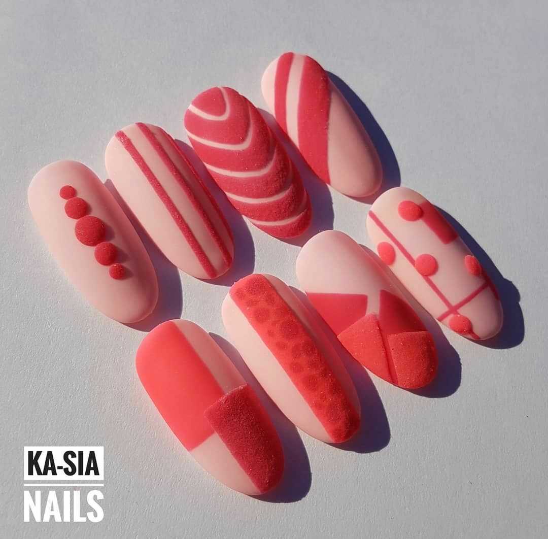 Различные геометрические формы, причудливые фигуры, эффект битого стекла или граней драгоценного камня — все это можно отнести к новинкам дизайна молодежного маникюра 2021-2022. Чаще всего в рамках этого тренда девушки выбирают треугольные узоры, на втором месте прямые линии, а замыкает тройку лидеров квадрат во всех его проявлениях.