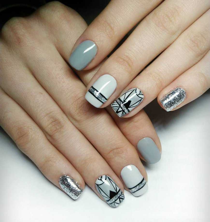 Если говорить по графике и оформлению, в моде несимметричная геометрия, фольга, принты (животные, цветы, стразы), приветствуется разная фактура в одном дизайне. Например матовые и глянцевые ногти на одной руке.