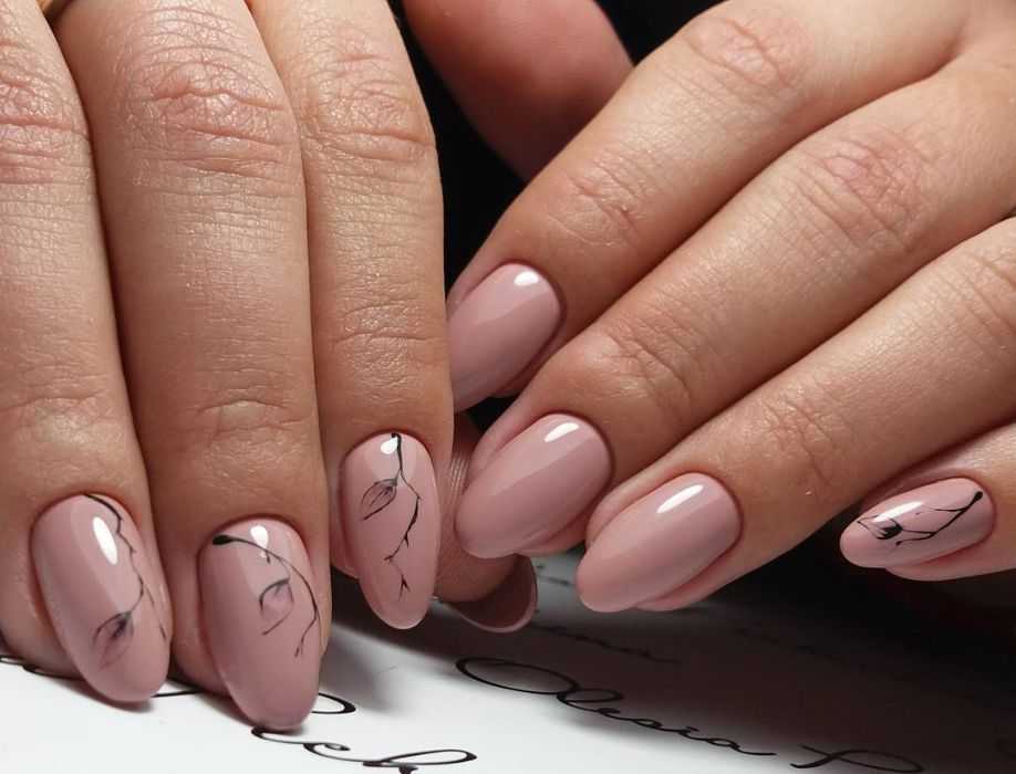 В стиле минимализма осень может быть представлено черной росписью веток на матовом маникюре тонкими, полупрозрачными цветочными мотивами, выполненными черным цветом на цветном лаке.