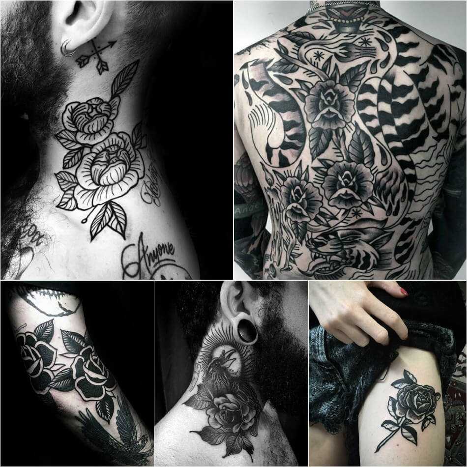 Хотя многим нравятся различные тату ярких оттенков, это не приуменьшает изобилия черных татуировок. Хотя иногда проскакивают и любители белых татуировок. В темных тонах наносят все существующие рисунки мира. Встречаются все возможные изображения: