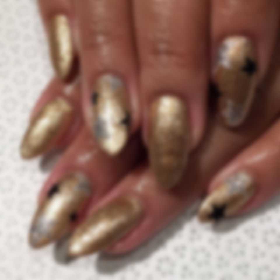 Сочетание серебряного и золотого блеска. Драгоценные металлы вполне могут соседствовать в нейл-арте.