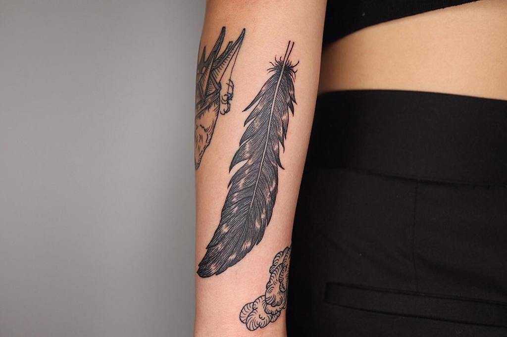 В некоторых нациях татуировка перо имела значение могущественности и применялась вместо атрибута власти. Очень красиво смотрится сочетание с индейскими мотивами. Именно в данном народе приобрели большую популярность подобные татушки для парней.