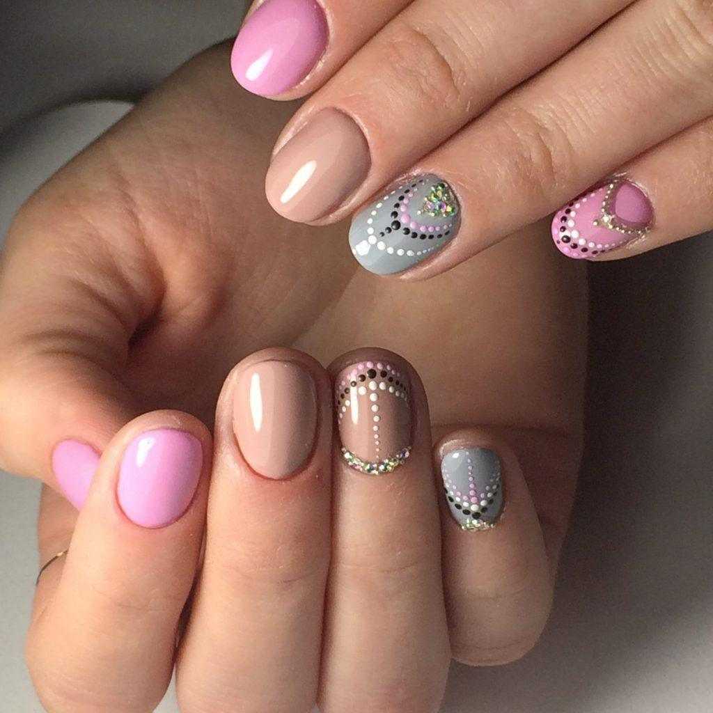 Здесь властвуют яркие оттенки — красный, оранжевый, зеленый, серый и коричневый. Для создания нежного маникюра берите эти активные оттенки, но преобразуйте их. Вместо оранжевого подойдет коралловый, красный меняем на розовый, темный серый на пастельный, а коричневый заменим оттенком капучино.