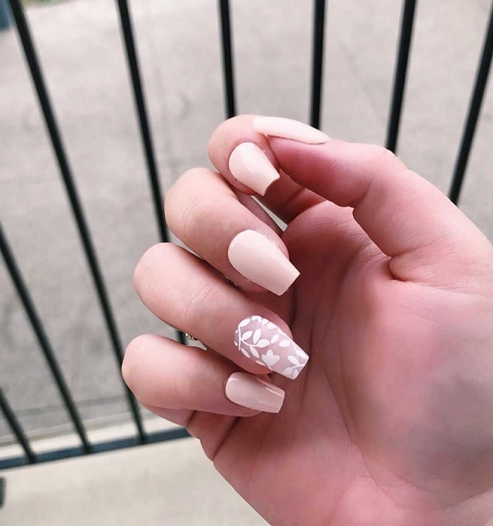 Эти квадратные ногти отлично сочетаются с чистым и простым матовым лаком. Но также будет хорошей идеей добавление кружевного акцента в дизайн ногтей. Тонкость нейтрального матового лака отлично подчеркивает драматичность акцентного ногтя.