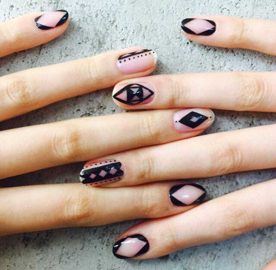 Линии, полосы, зигзаги и геометрические фигуры на ногтях хороши тем, что выглядят совершенно, но при этом очень просты в исполнении. Техник исполнения таких узоров очень много: для одних фигур достаточно иметь под рукой несколько цветных лаков и клейкие полоски, для других нужны трафареты, в качестве которых можно использовать детали, вырезанные из обыкновенного скотча. Ломаные линии, буквы и геометрические фигурки также можно рисовать тонкой кисточкой. Любительницам собственноручно выполненного маникюра желательно иметь не только различные кисточки, но и специальный инструмент для нанесения лака «дотс». Он позволит проводить более ровные и четкие линии.