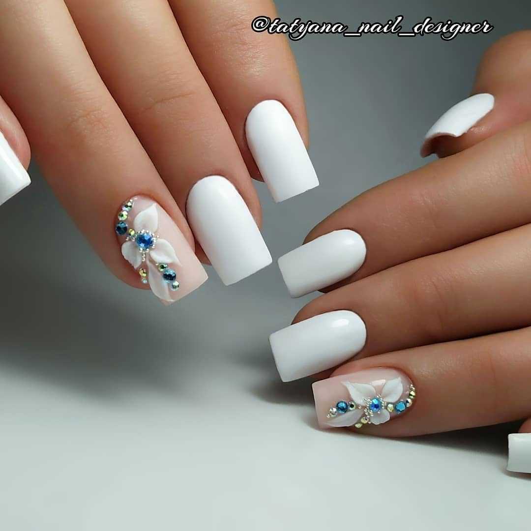 Поэтому если вы решили надеть белое платье и фату, то не стоит делать маникюр, с использованием данного материала.