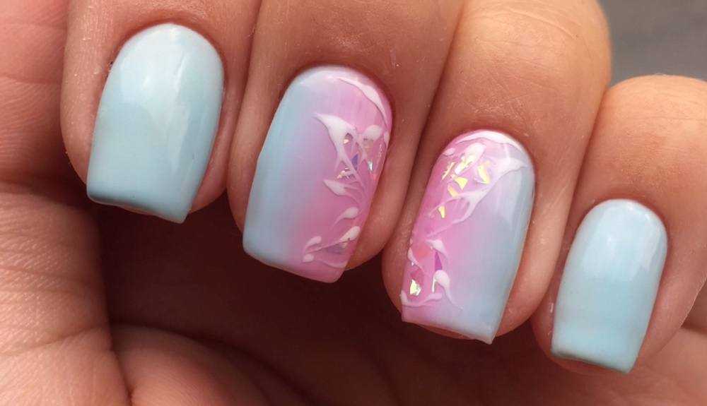 Особый интерес вызывает сочетание белого и голубого. Эти оттенки символизируют гармонию, спокойствие, чистоту. Чтобы добавить маникюру оригинальность, можно включить в работу пастельный оттенок. Так дизайн получится более аккуратным и притягательным. Он подойдет для создания делового стиля, станет настоящим украшением праздничного образа.