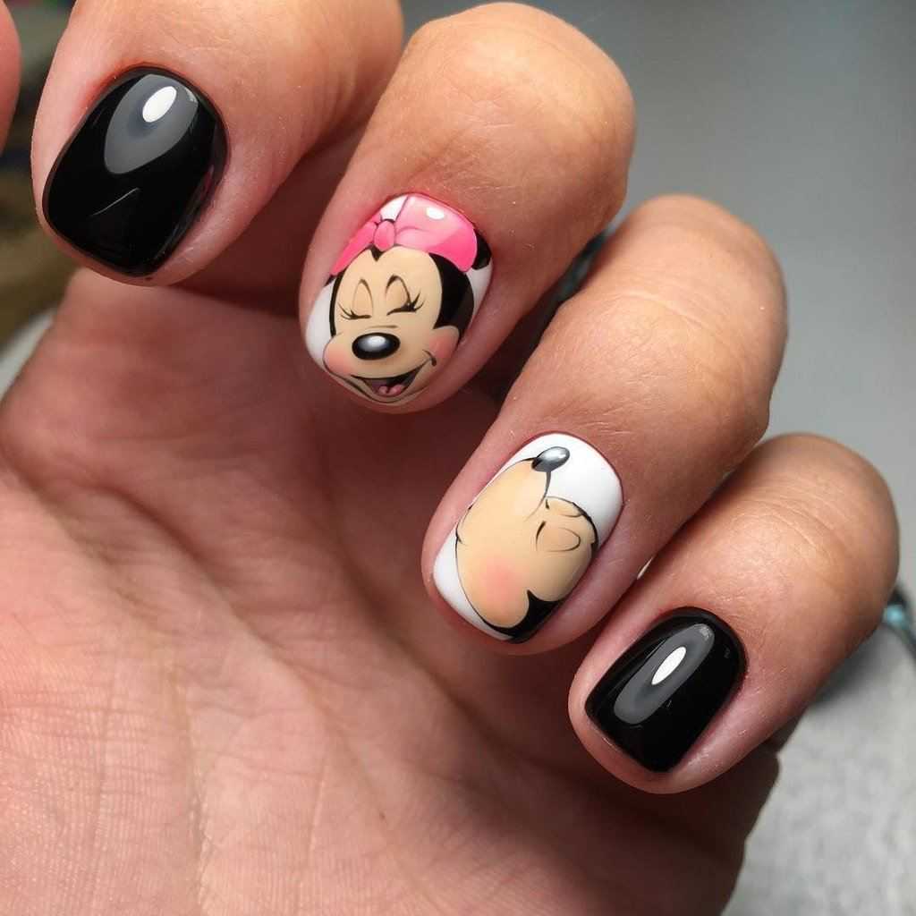 Также можно добавить в нейл-дизайн изображения оленей, шаров, хлопушек. Поскольку 2020 — год Белой Металлической Мыши, актуальными окажутся рисунки мышат и крыс. Не очень любите грызунов? Тогда можно разбавить маникюр изображением Микки Мауса!