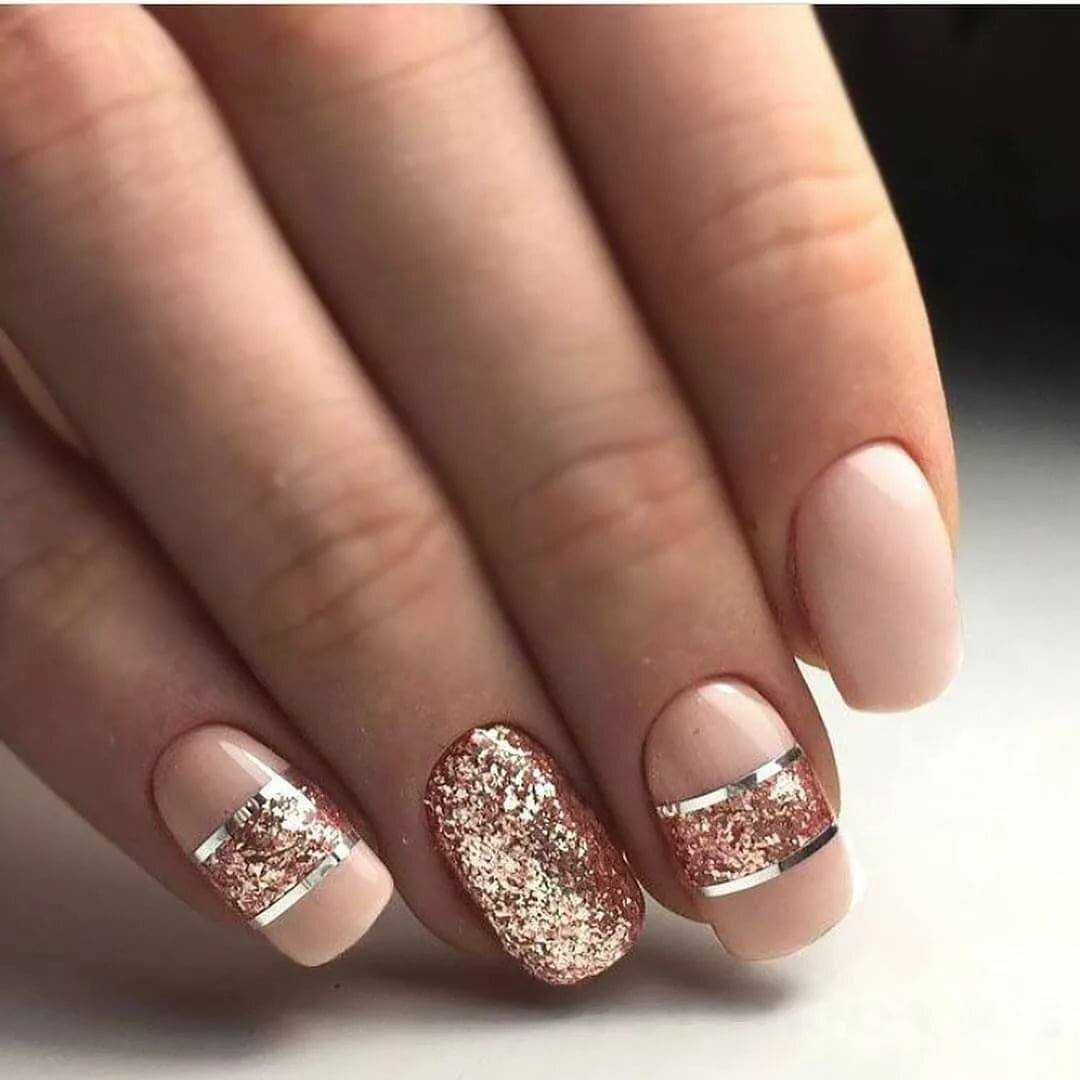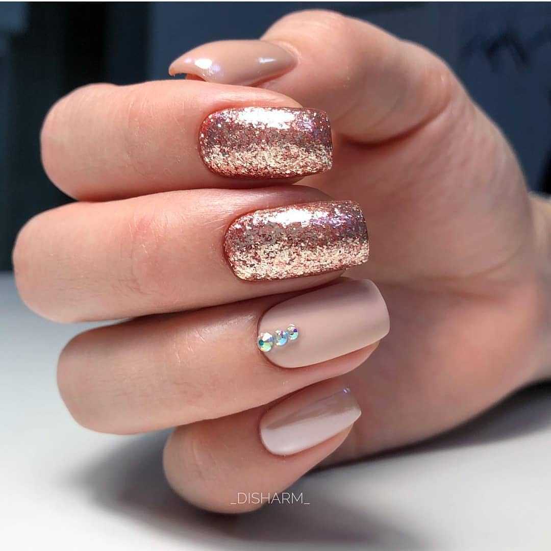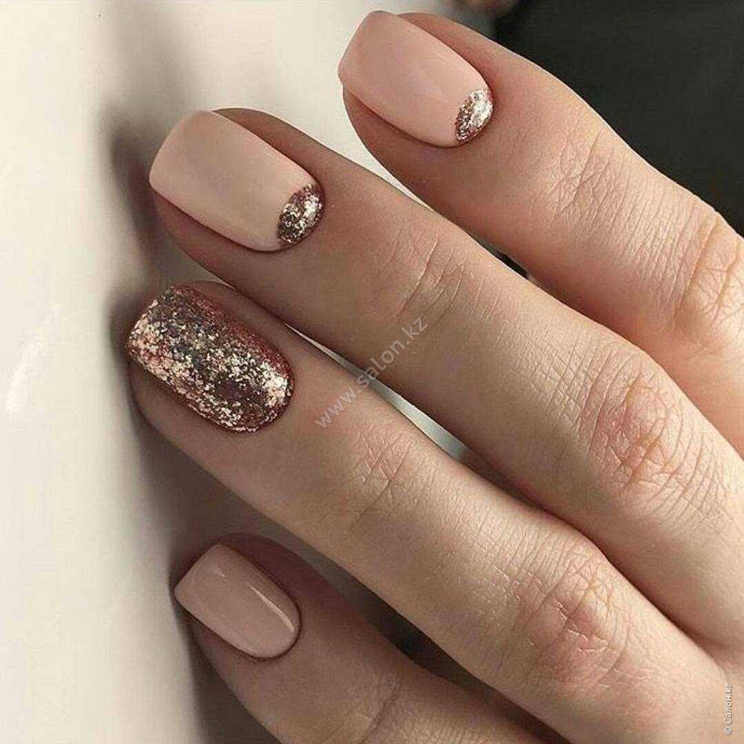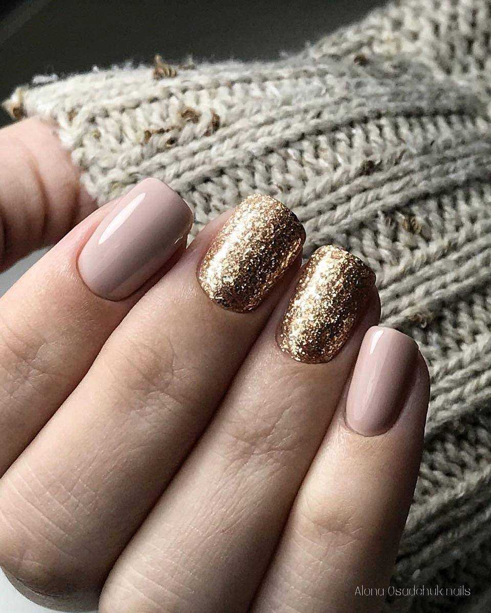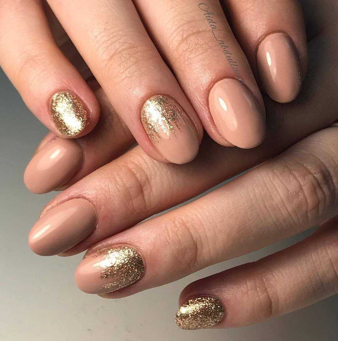 #5 Идеи нюдового маникюра с золотыми блестками