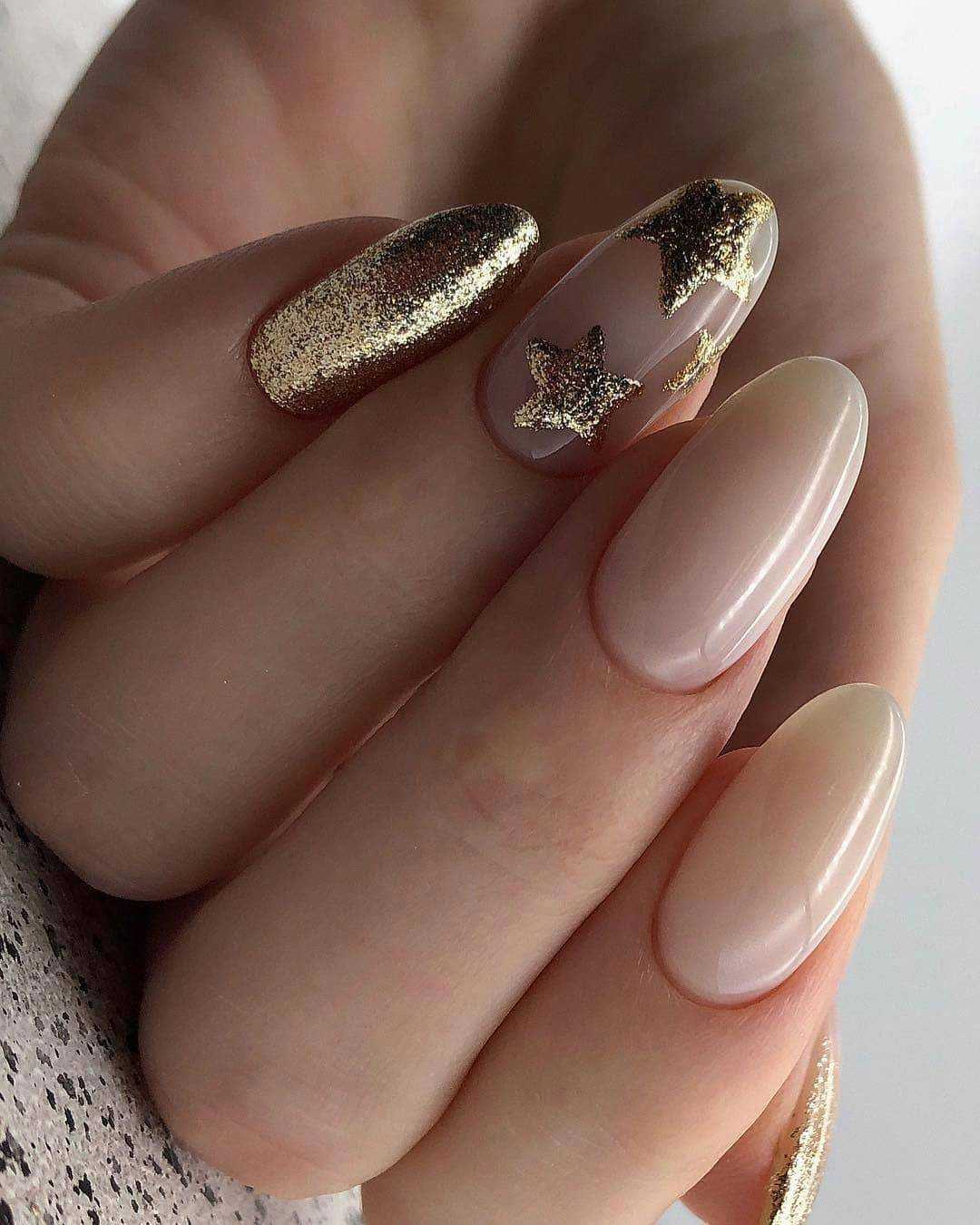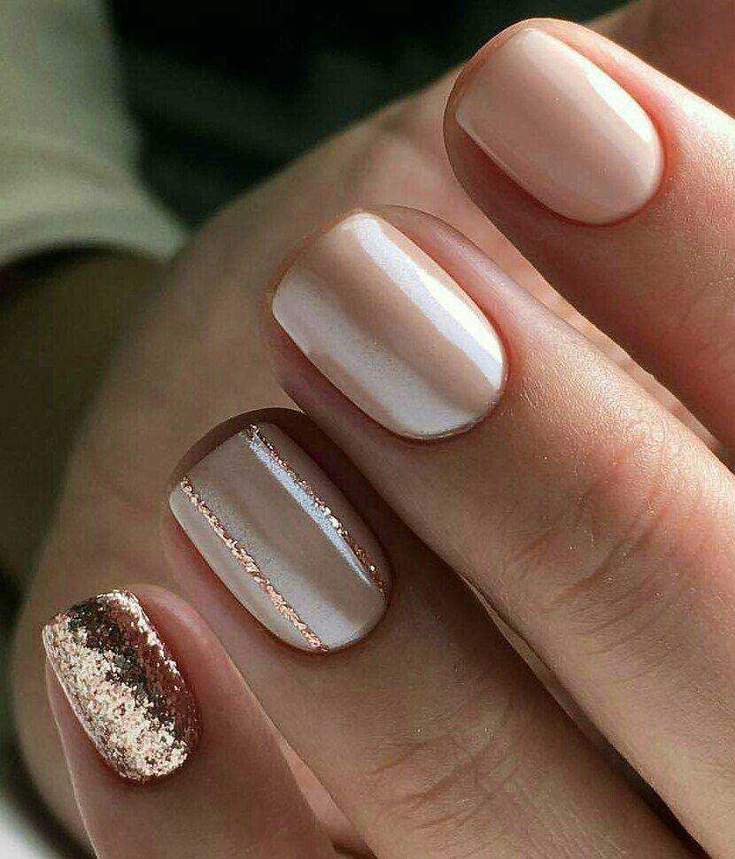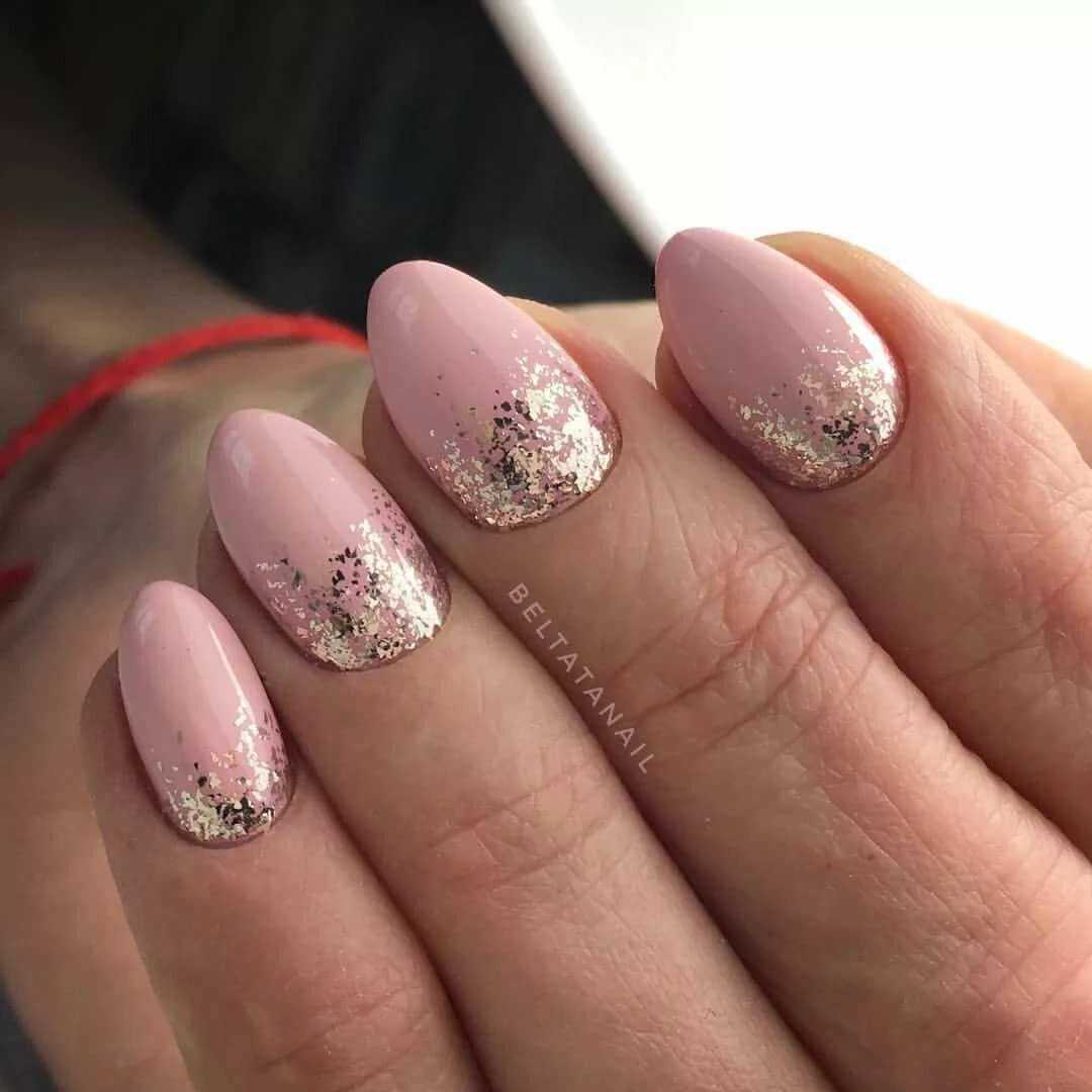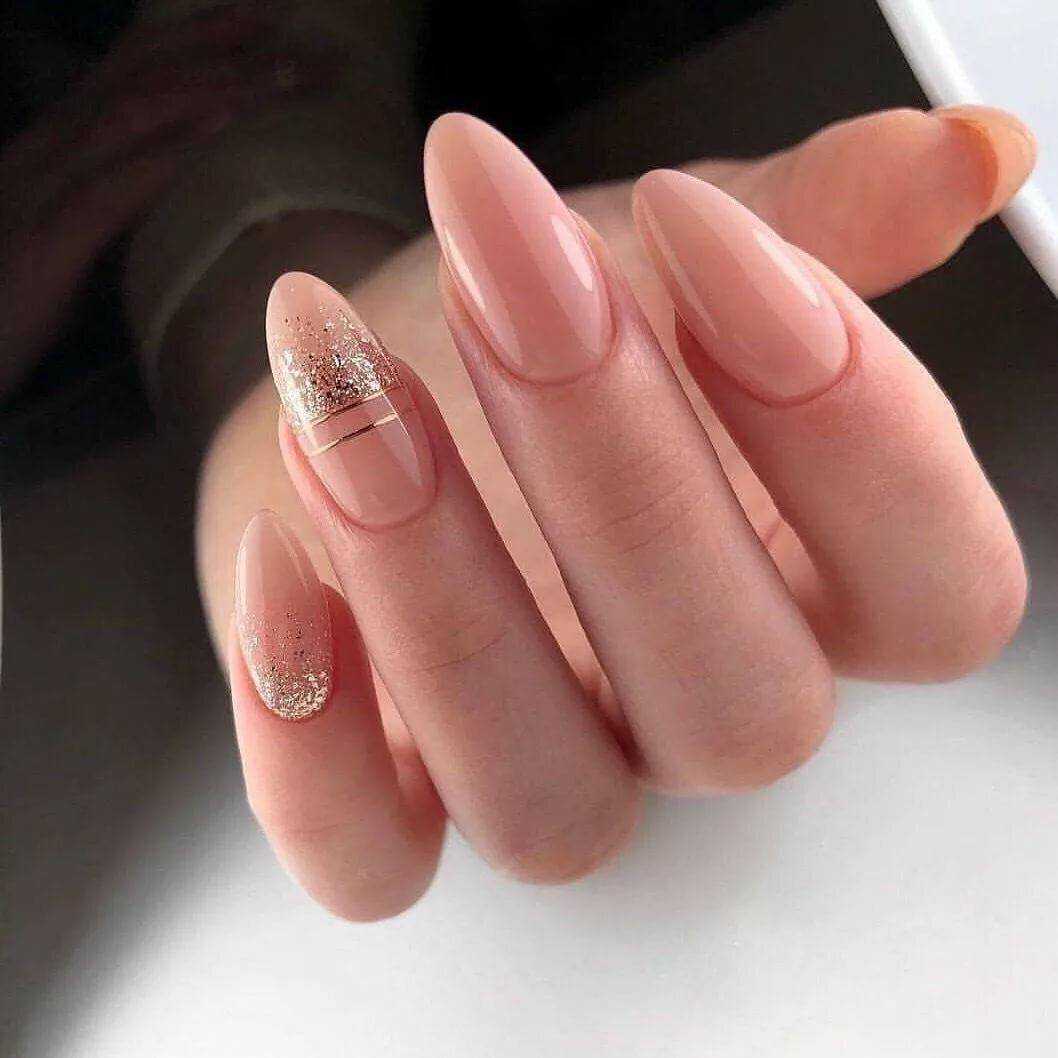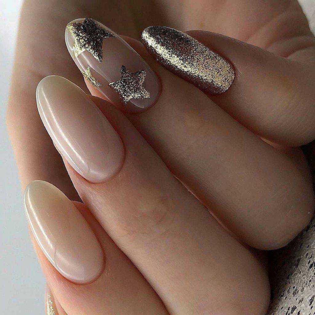 #5 Идеи нюдового маникюра с золотыми блестками