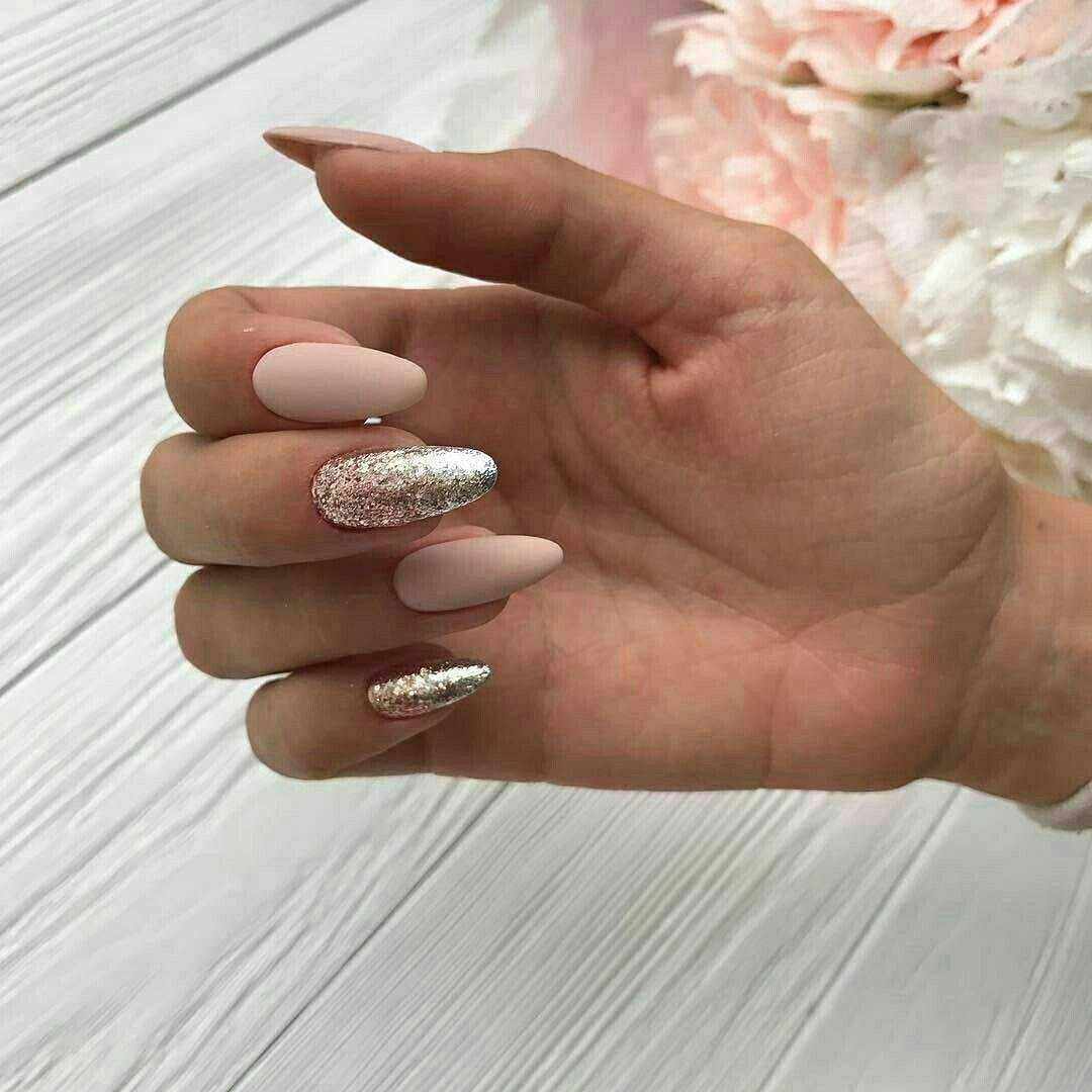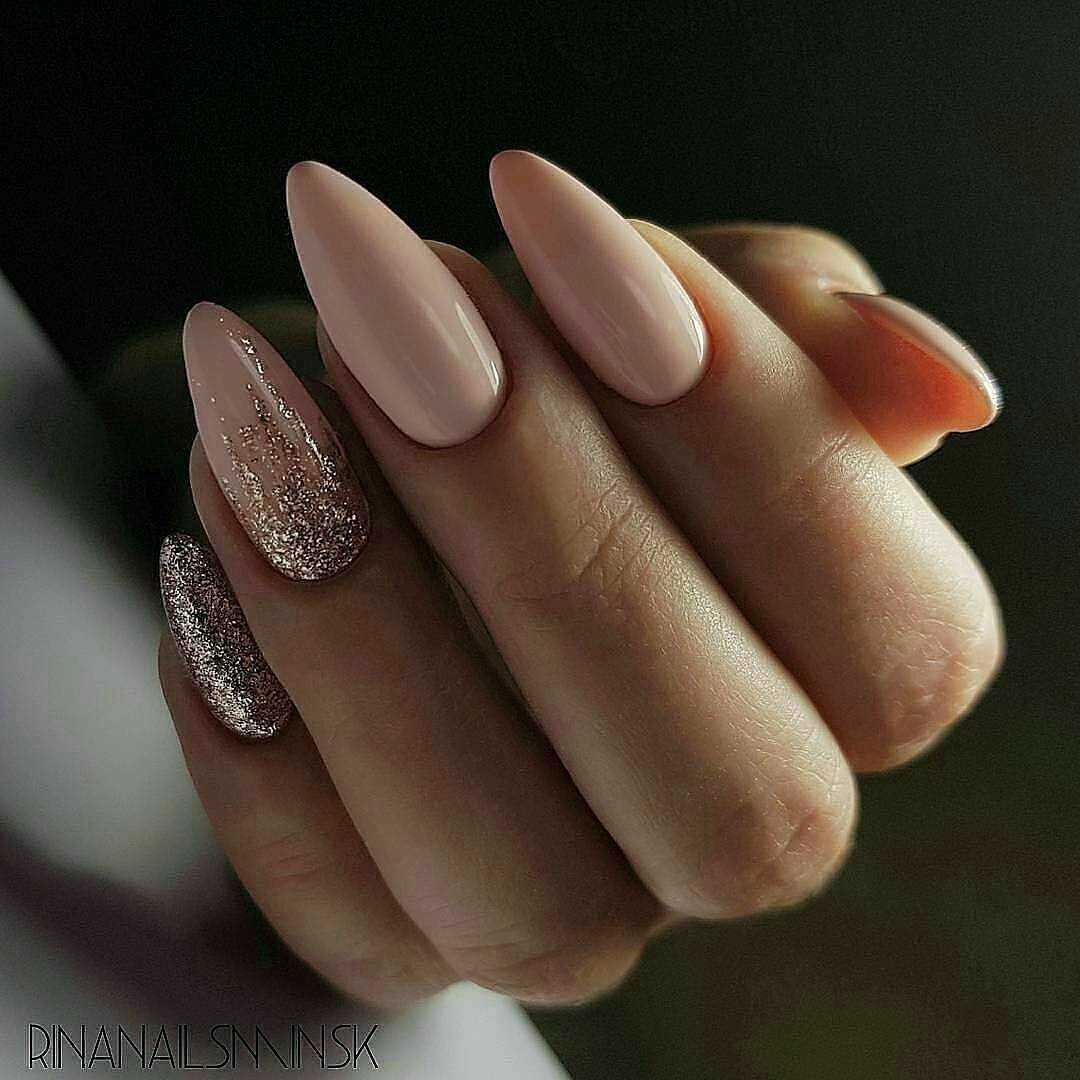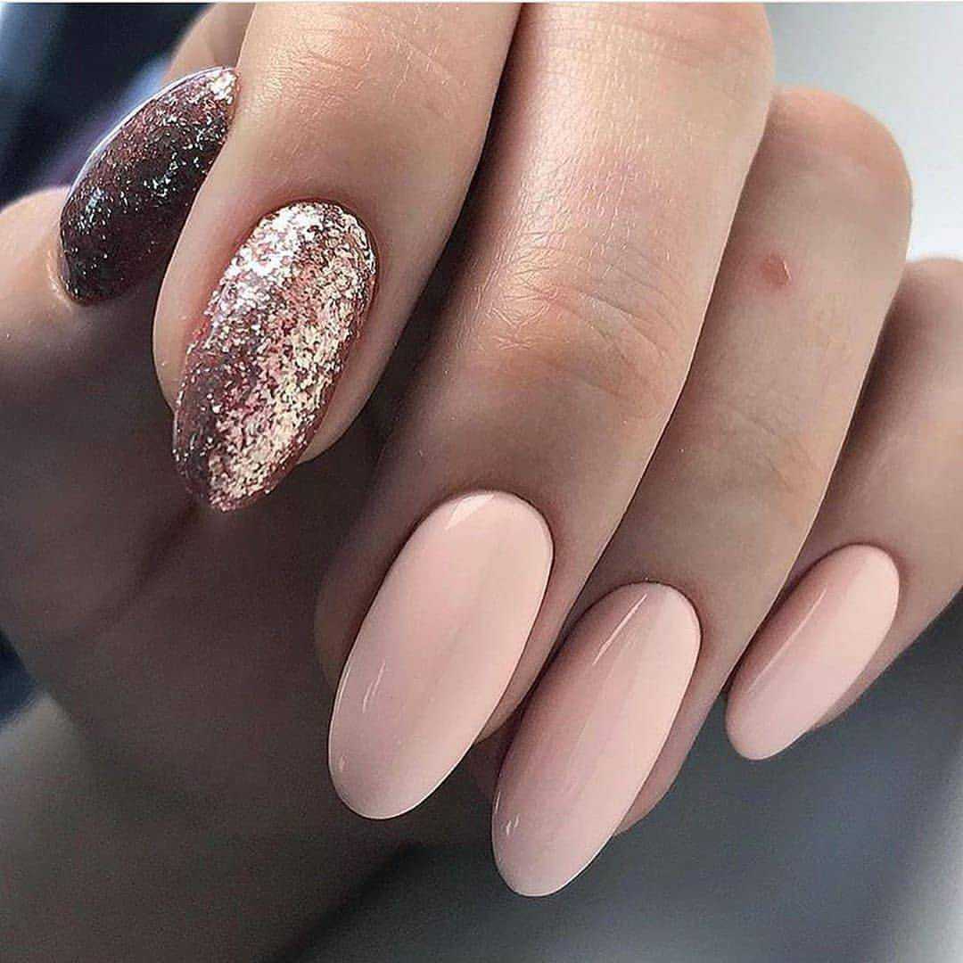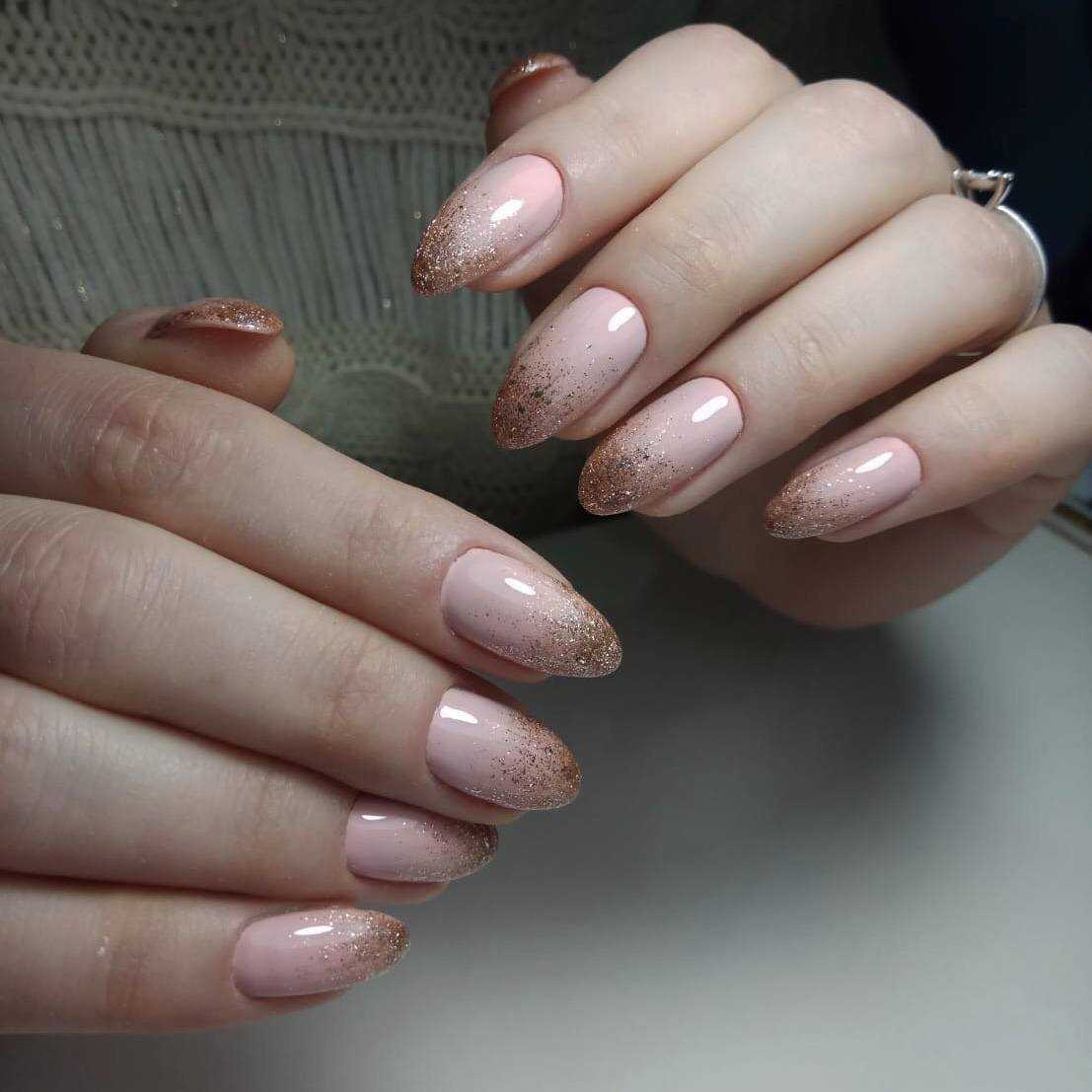 #5 Идеи нюдового маникюра с золотыми блестками