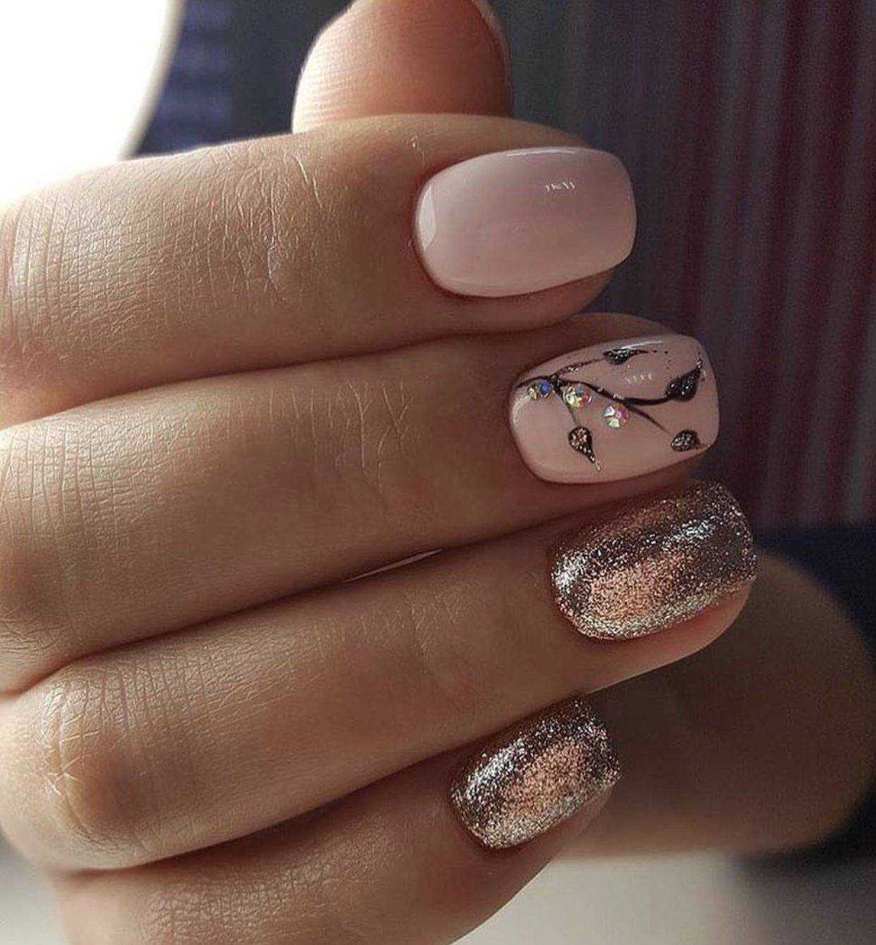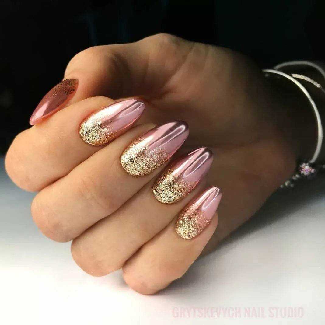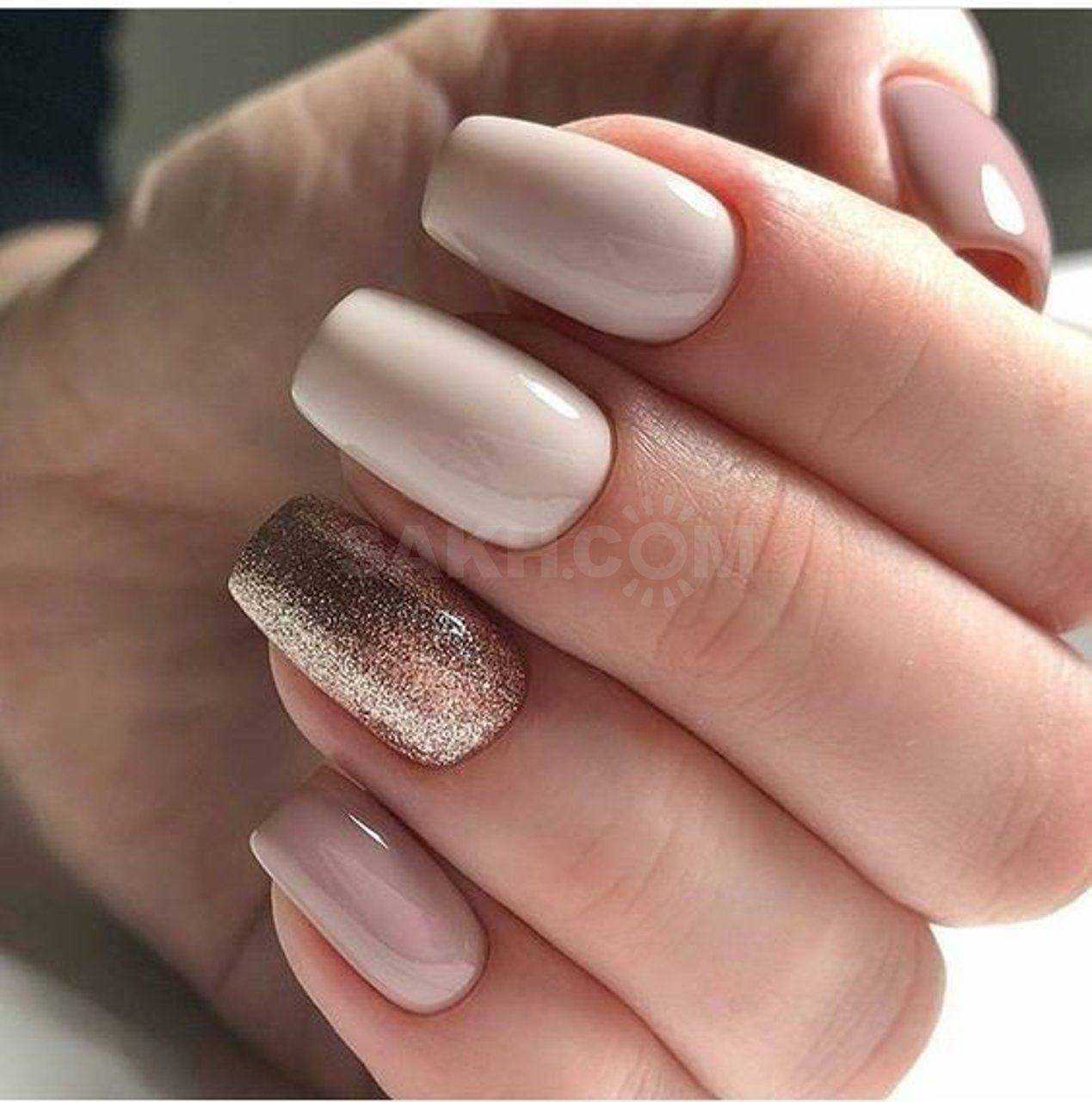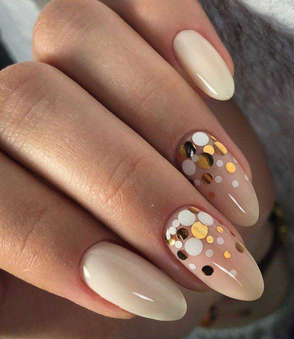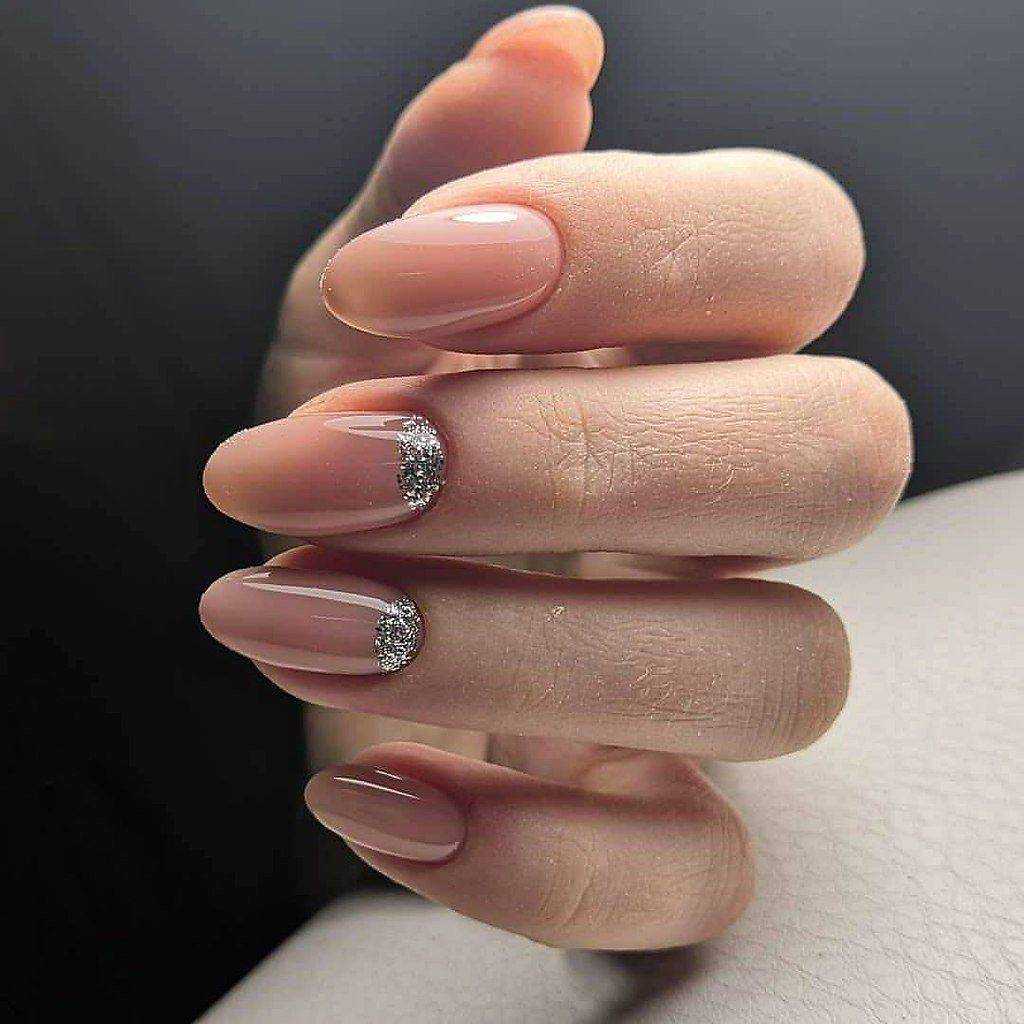 #5 Идеи нюдового маникюра с золотыми блестками