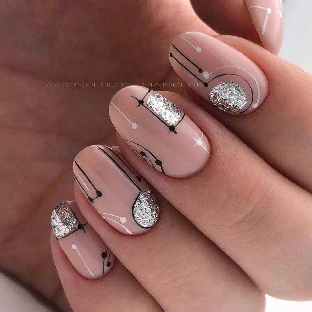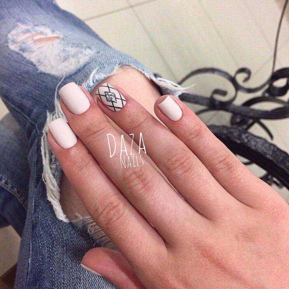 Если уж говорить об идеях нюдового маникюра, то нельзя не упомянуть и геометрический маникюр, который особенно хорошо смотрится именно вместе с нюдовыми оттенками.