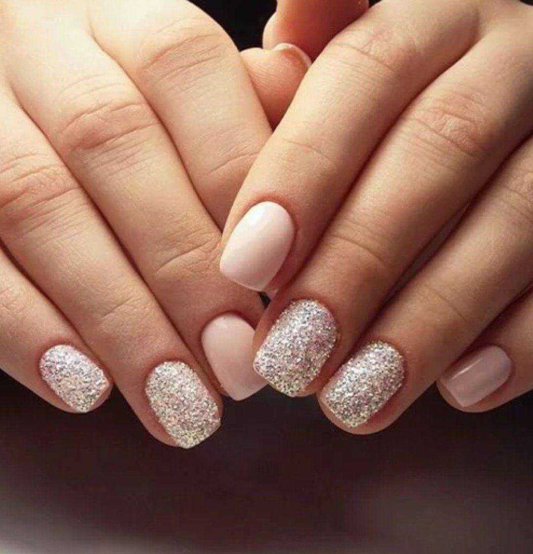 Самый простой дизайн с минимальными затратами. Маленькие блёсточки прекрасно подойдут для создания искрящегося маникюра.