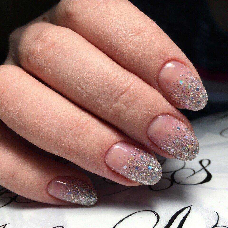 Омбре — идеально подойдет для новогоднего маникюра с глиттером. Использовать можно несколько оттенков глиттера, которые обеспечат плавный переход градиента.