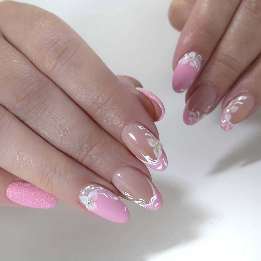 Оригинально выглядят нейл-арты со слайдерами. Используйте дизайн в мелкий цветочек, которые помогут создать милый девичий дизайн. Кроме этого используйте стемпинг для изображения оригинальных цветов, листьев и бутонов
