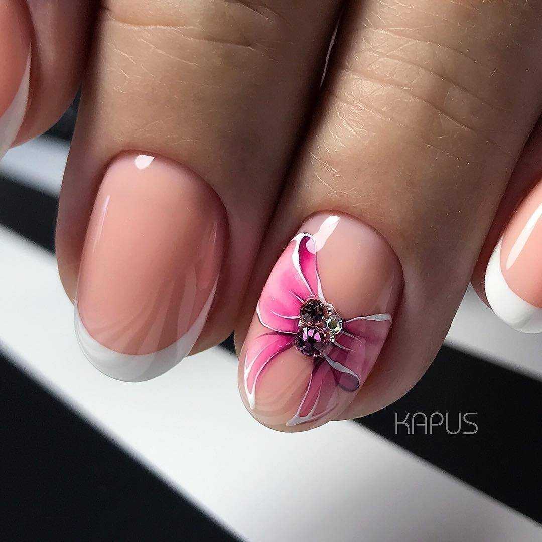 Бирюзовый френч сам по себе выглядит очень легко и воздушно, поэтому и рисунок должен быть соответствующим. Используйте для декора полевые цветы, орхидеи, ромашки, пионы и другие цветы