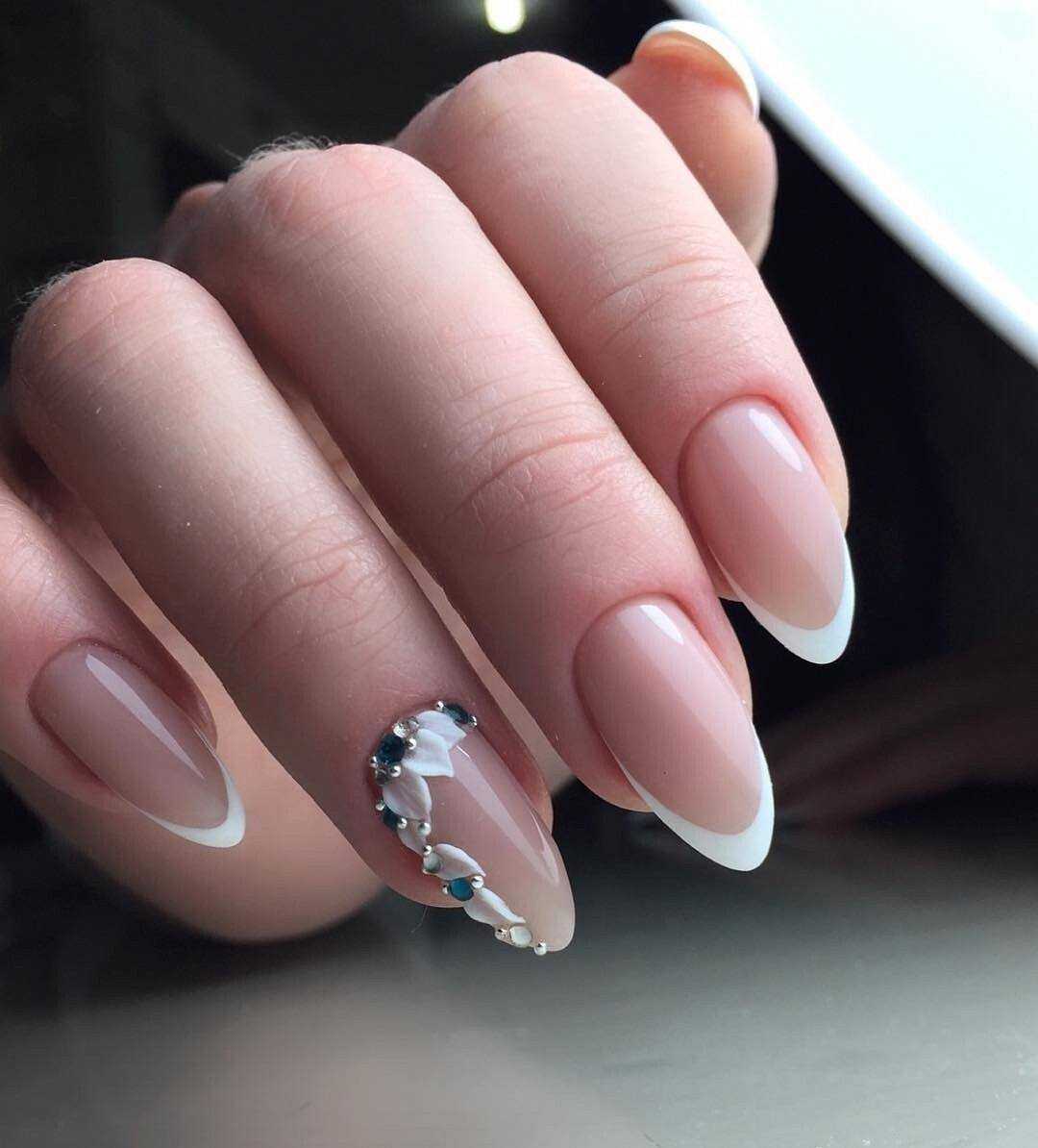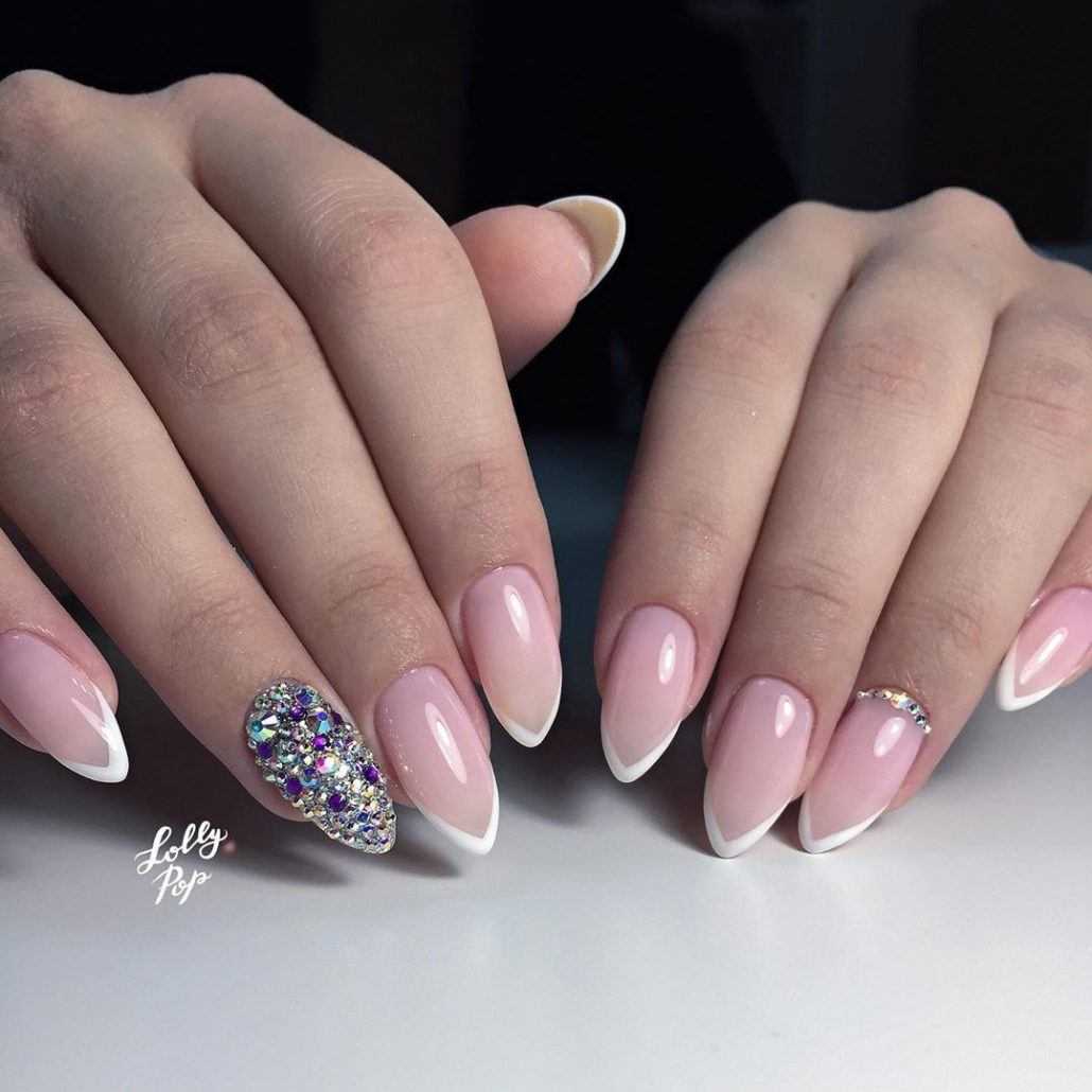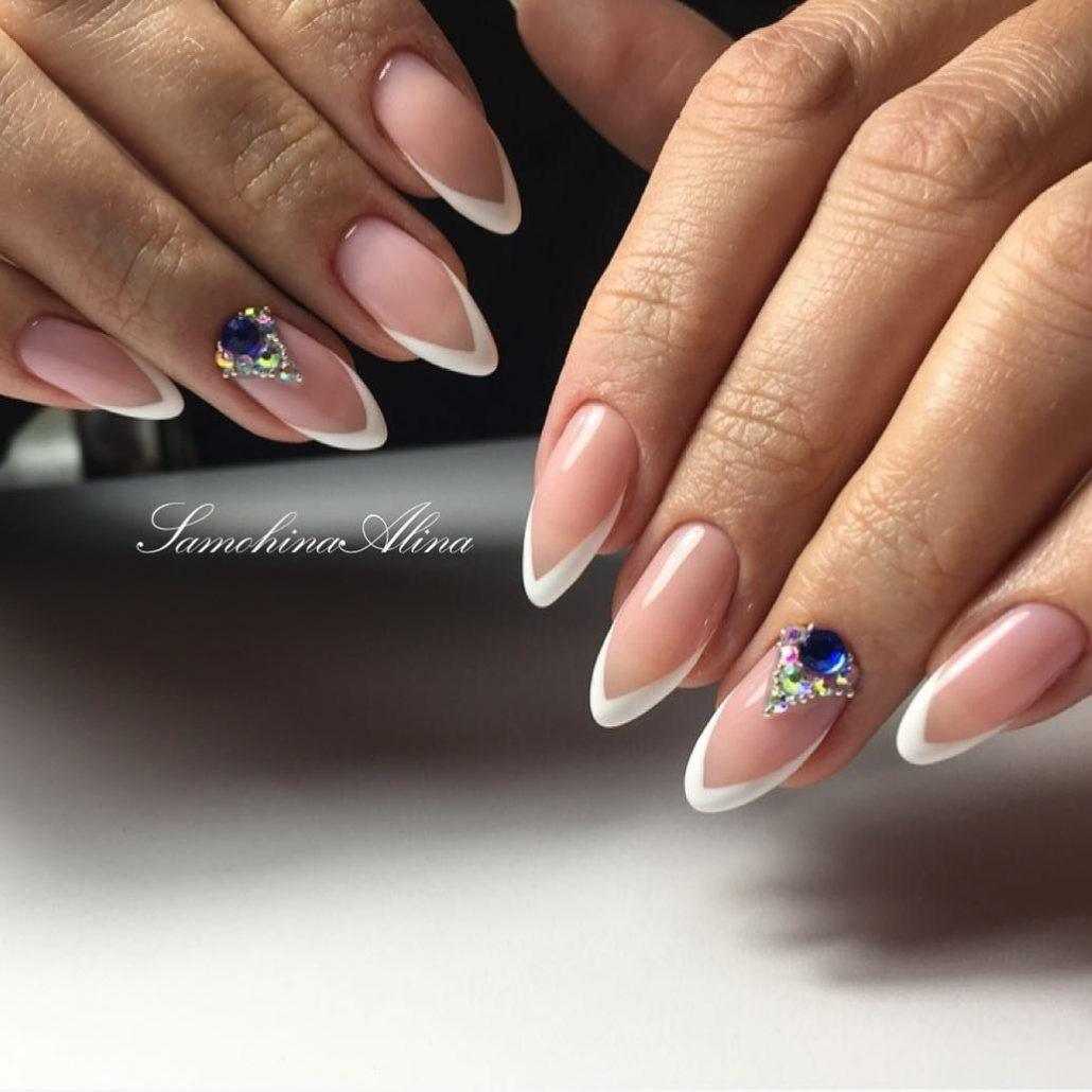 Закрепим уже пройденный урок: самый модный белый френч со стразами подразумевает их расположение максимально близко к кутикуле.