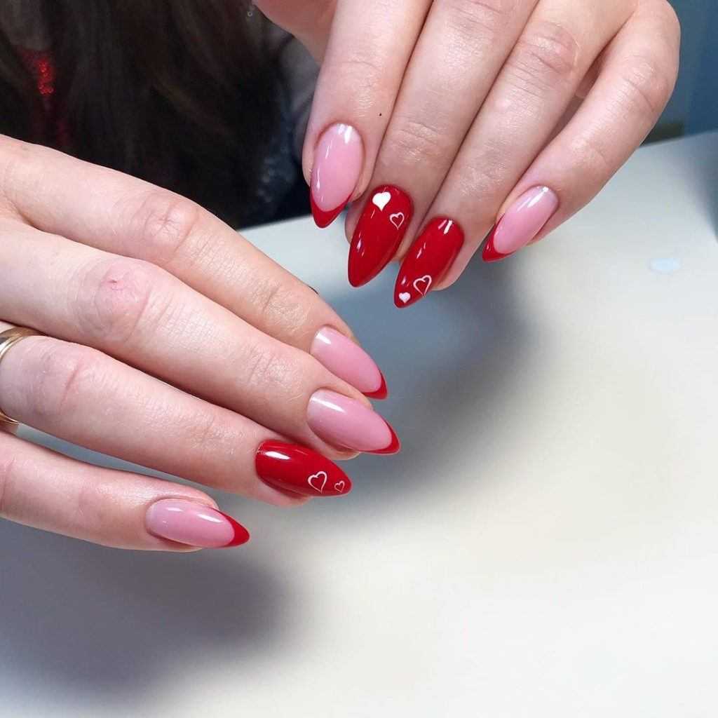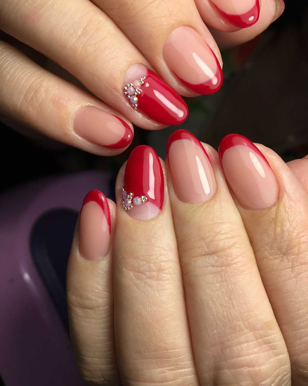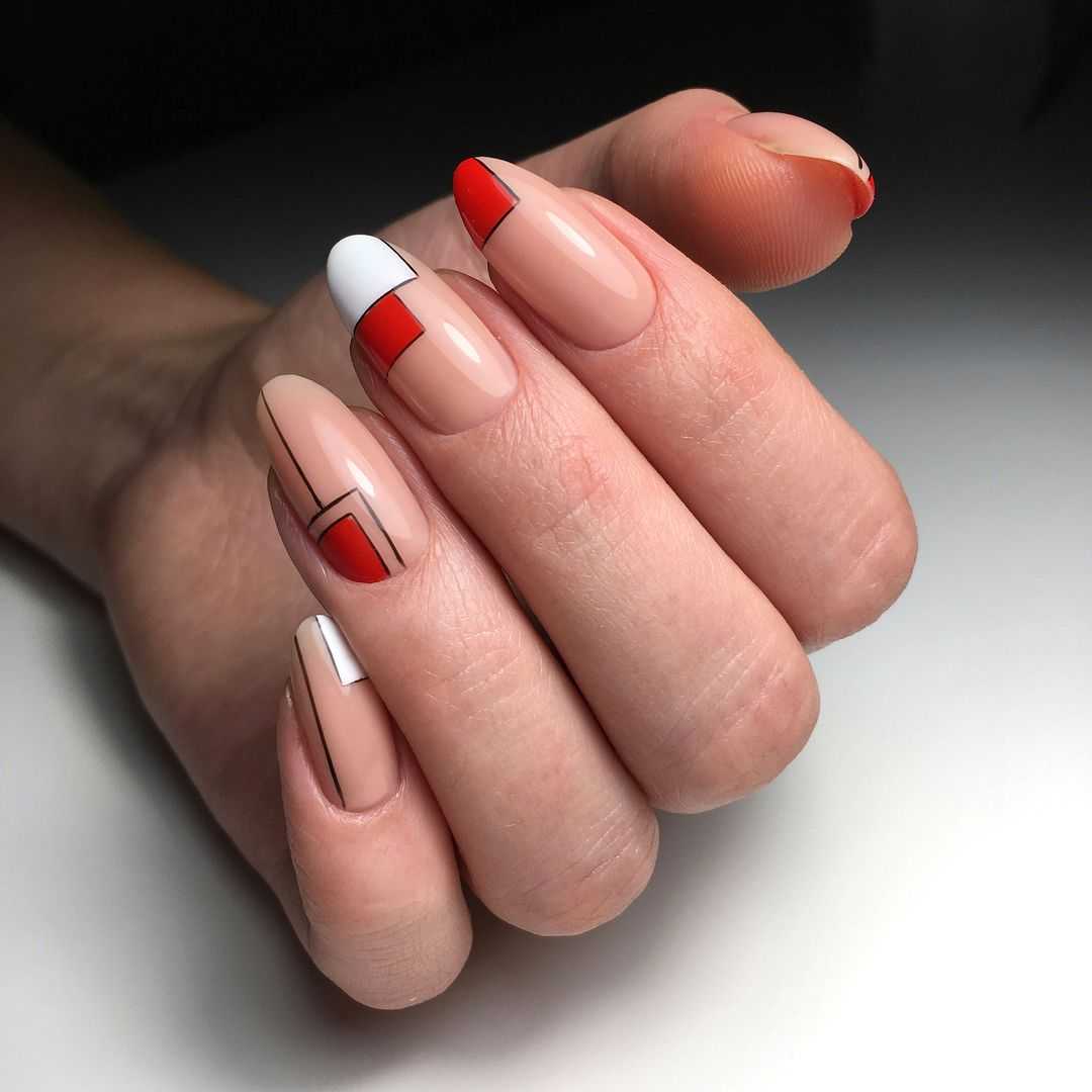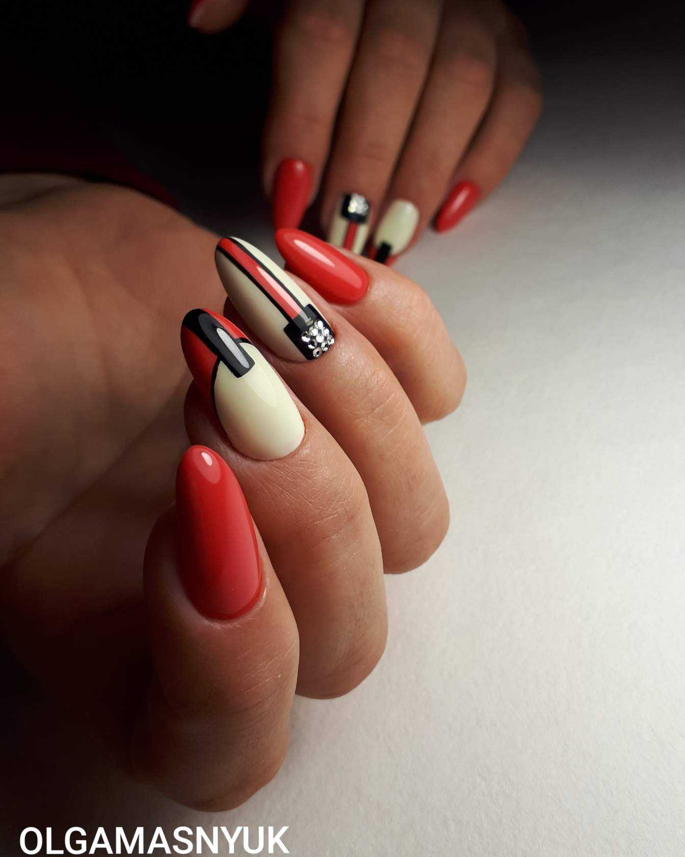 Красно-белый маникюр подходит не только фанаткам «Спартака» и уместен не только на трибунах. Нейл-арт, как на фото ниже, отлично дополнит вечернее платье в пол.