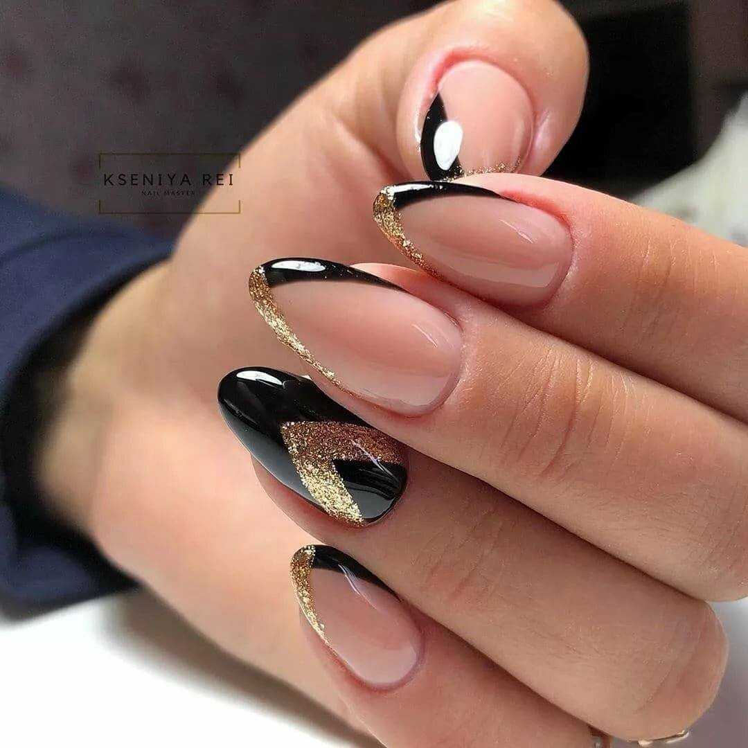 Отдельной категорией в этой технике стал цветной френч. Здесь мастер может дать волю своей фантазии. В новом году актуально использование глиттера и декора в виде бусин. Золотой френч подарит своей обладательнице дополнительную изюминку в образе.