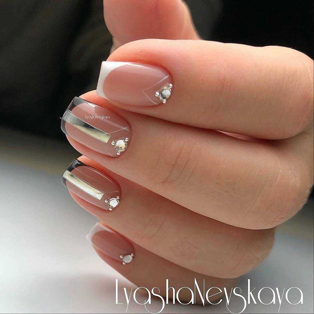 Сегодня модно комбинировать несколько стилей и техник выполнения дизайна ногтей воедино. Посмотрим, как смотрится френч с минимализмом, французский маникюр с элементами геометрических линий, фольгированных деталей или страз.