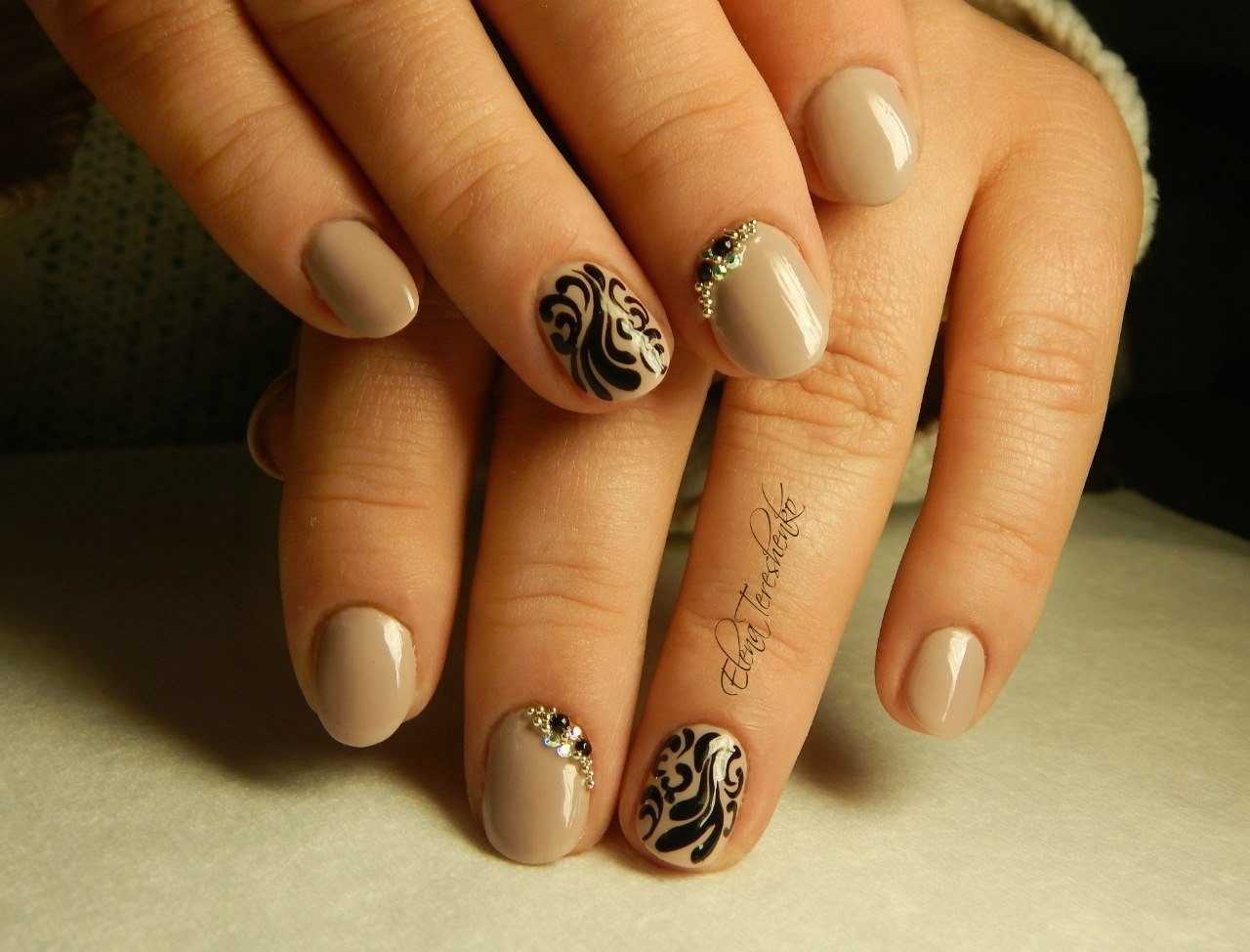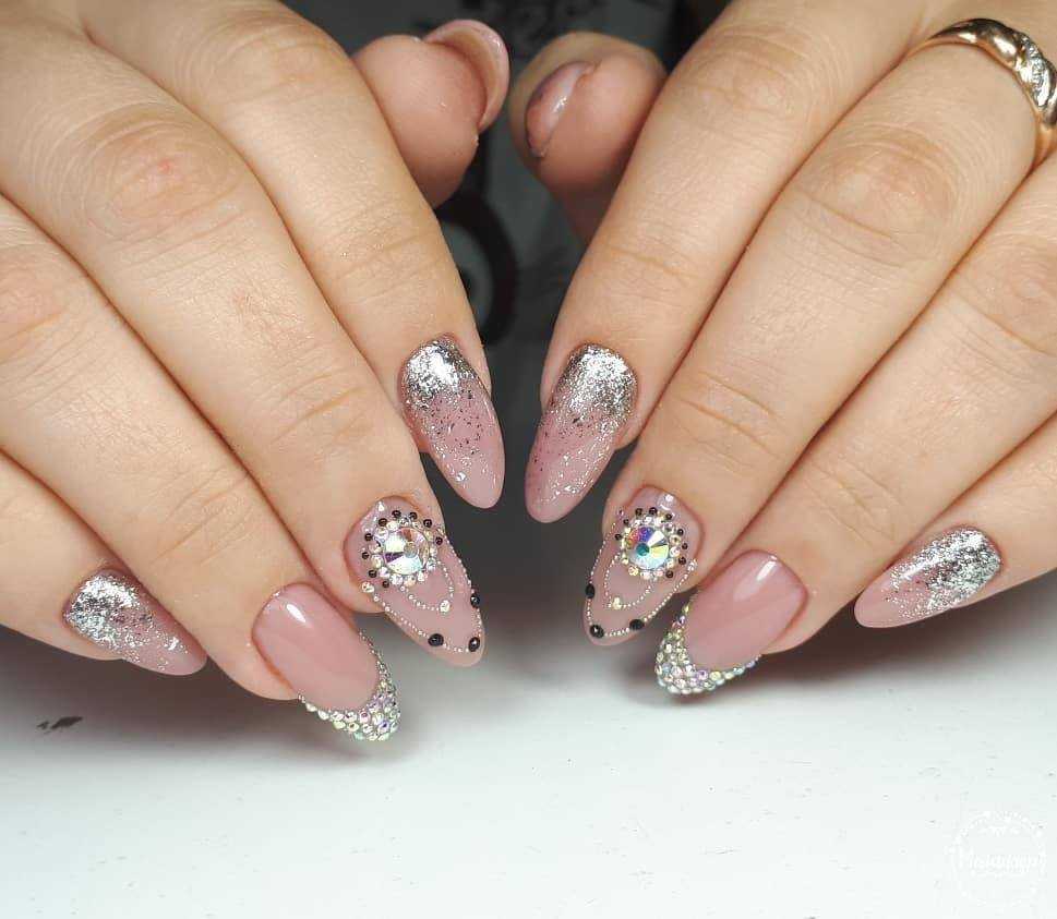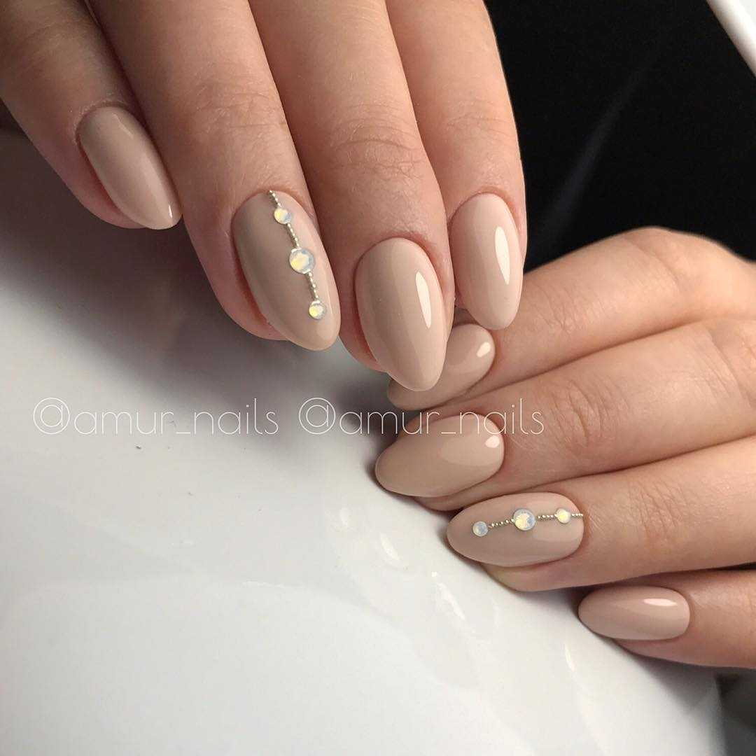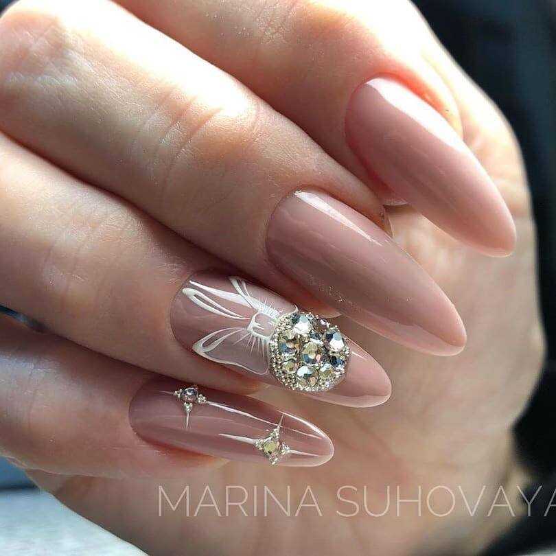 Стильные варианты оформления маникюра беж со стразами и блёстками