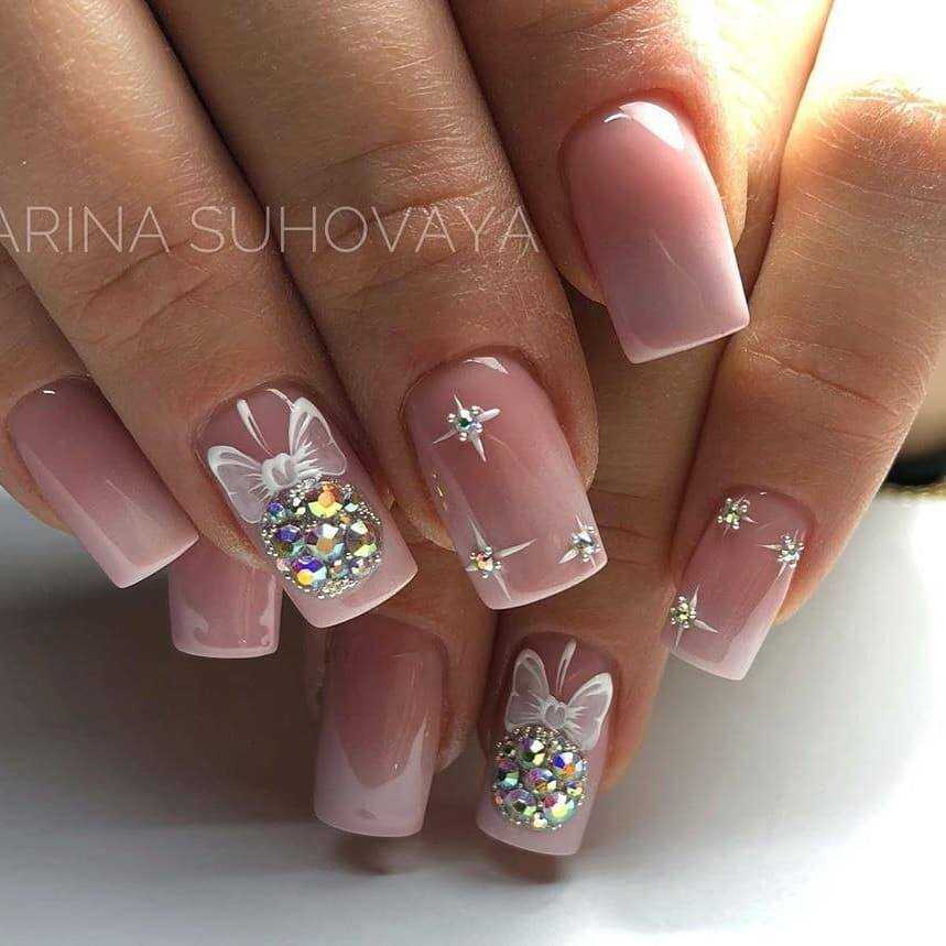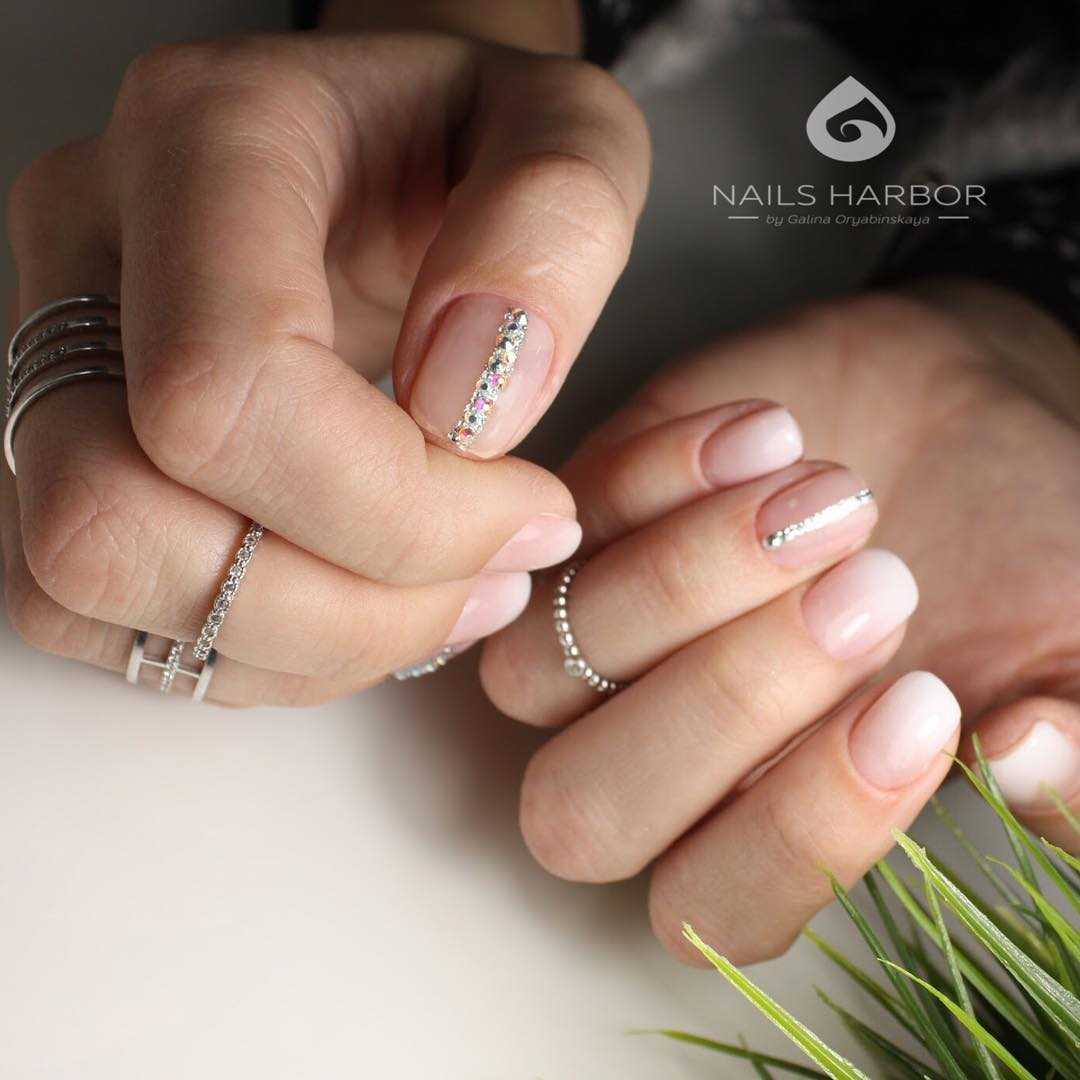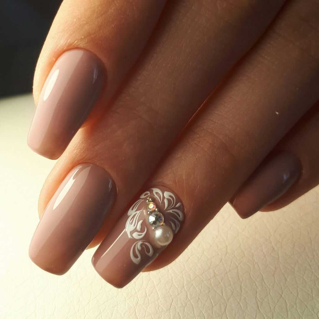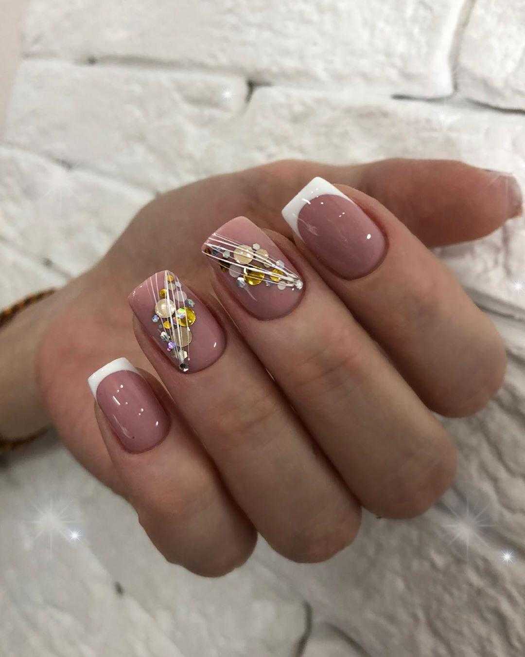 Стильные варианты оформления маникюра беж со стразами и блёстками