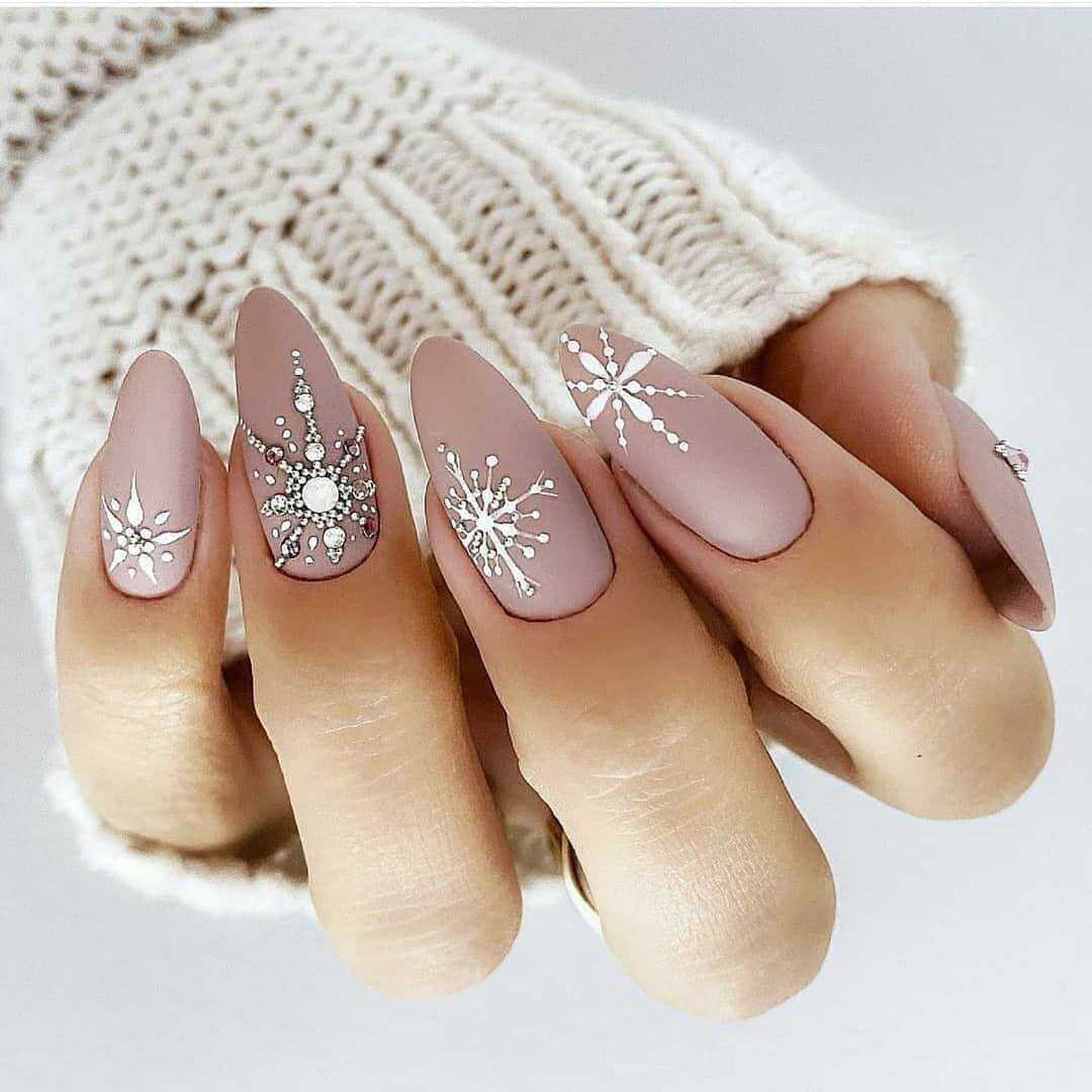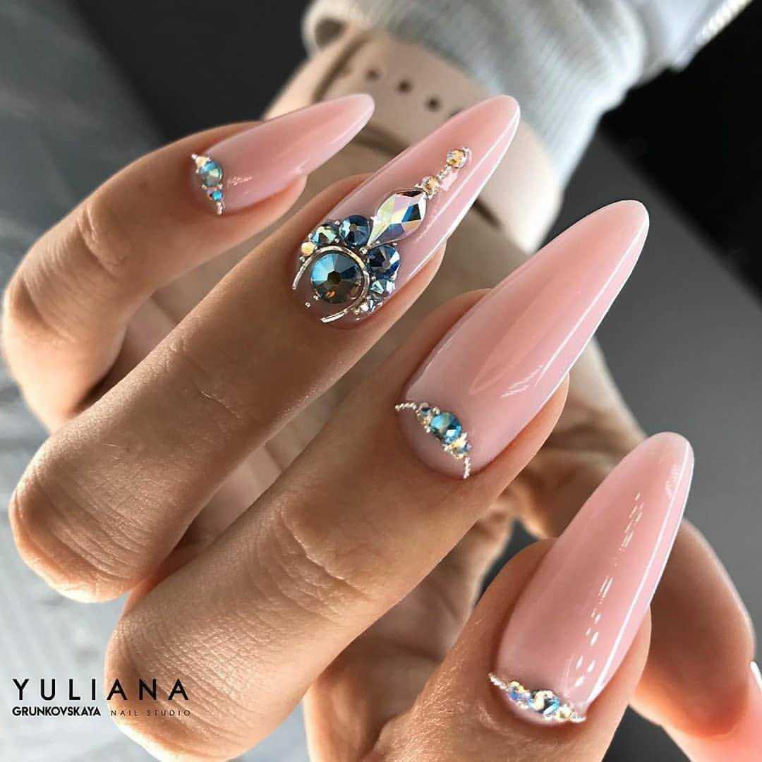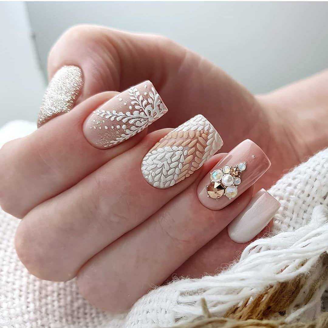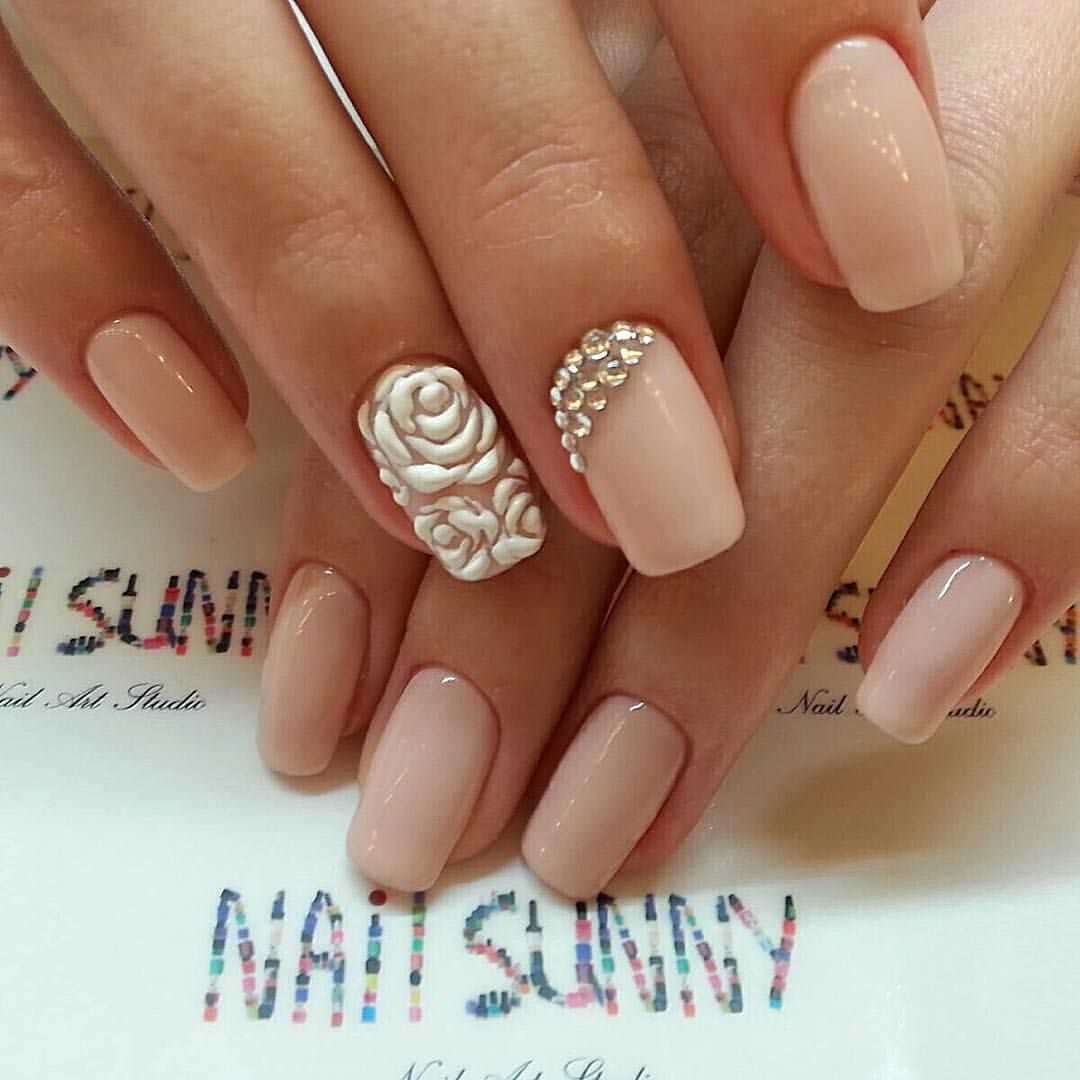 Стильные варианты оформления маникюра беж со стразами и блёстками