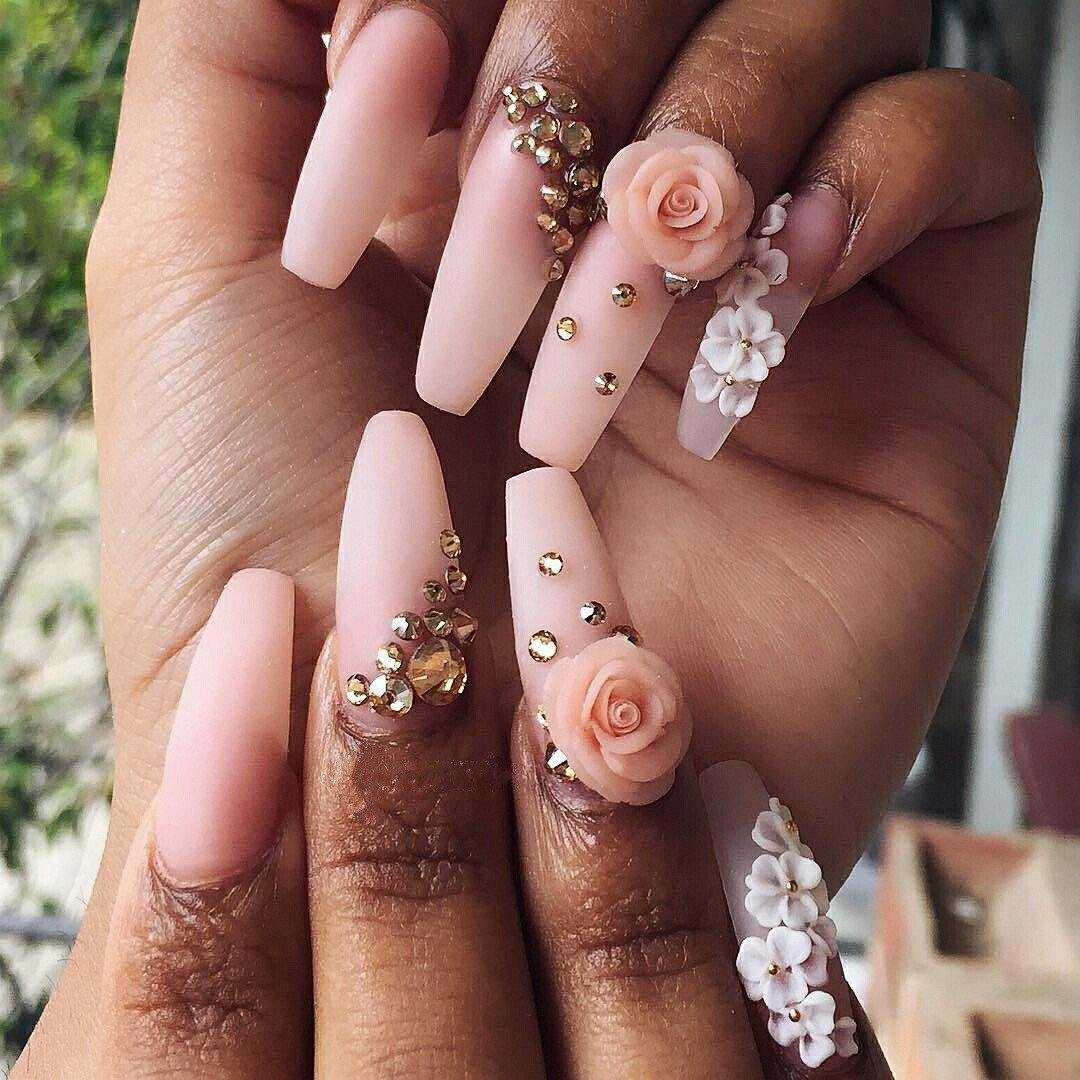 Телесные оттенки на длинных ноготках
