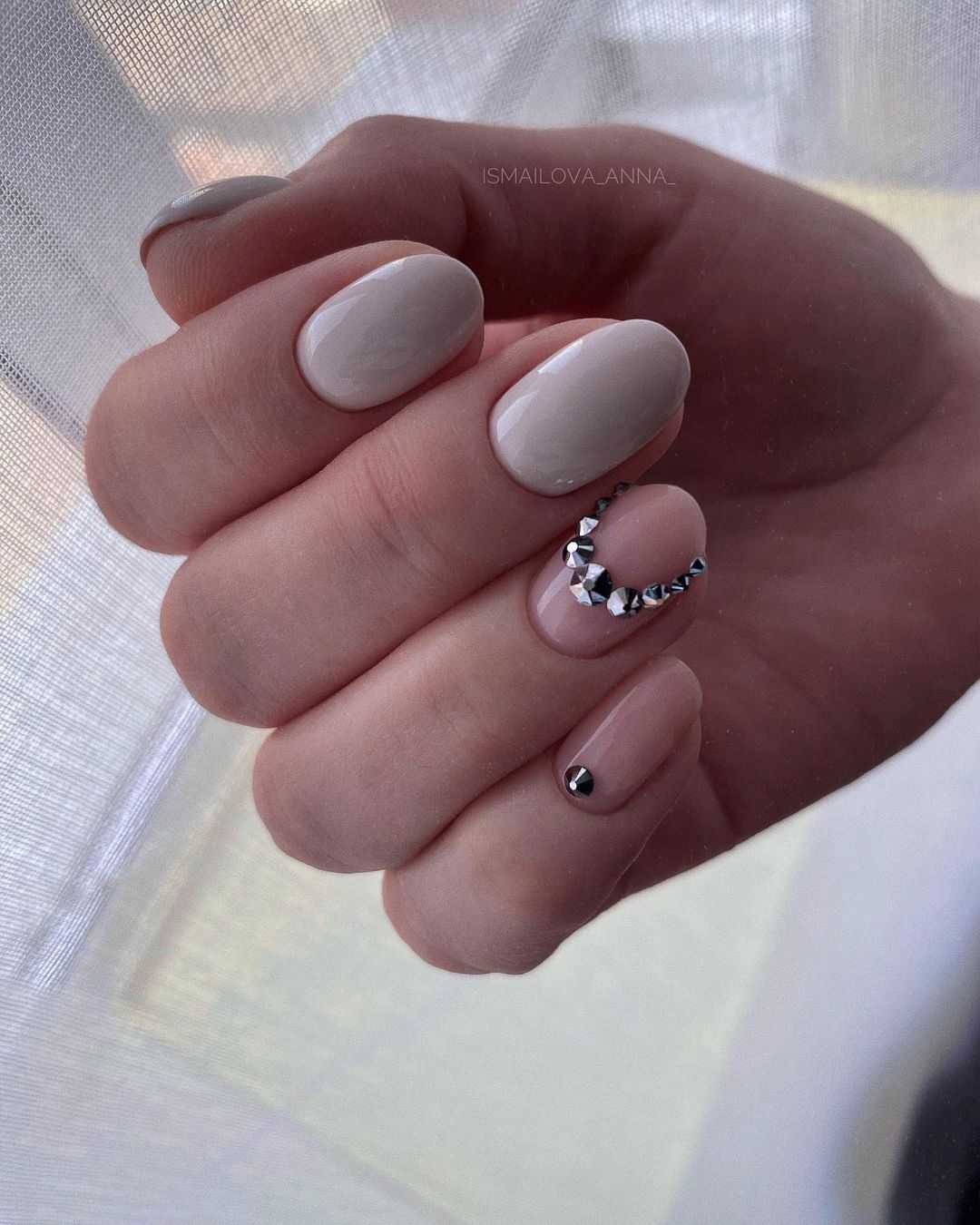 Бежевый маникюр со стразами