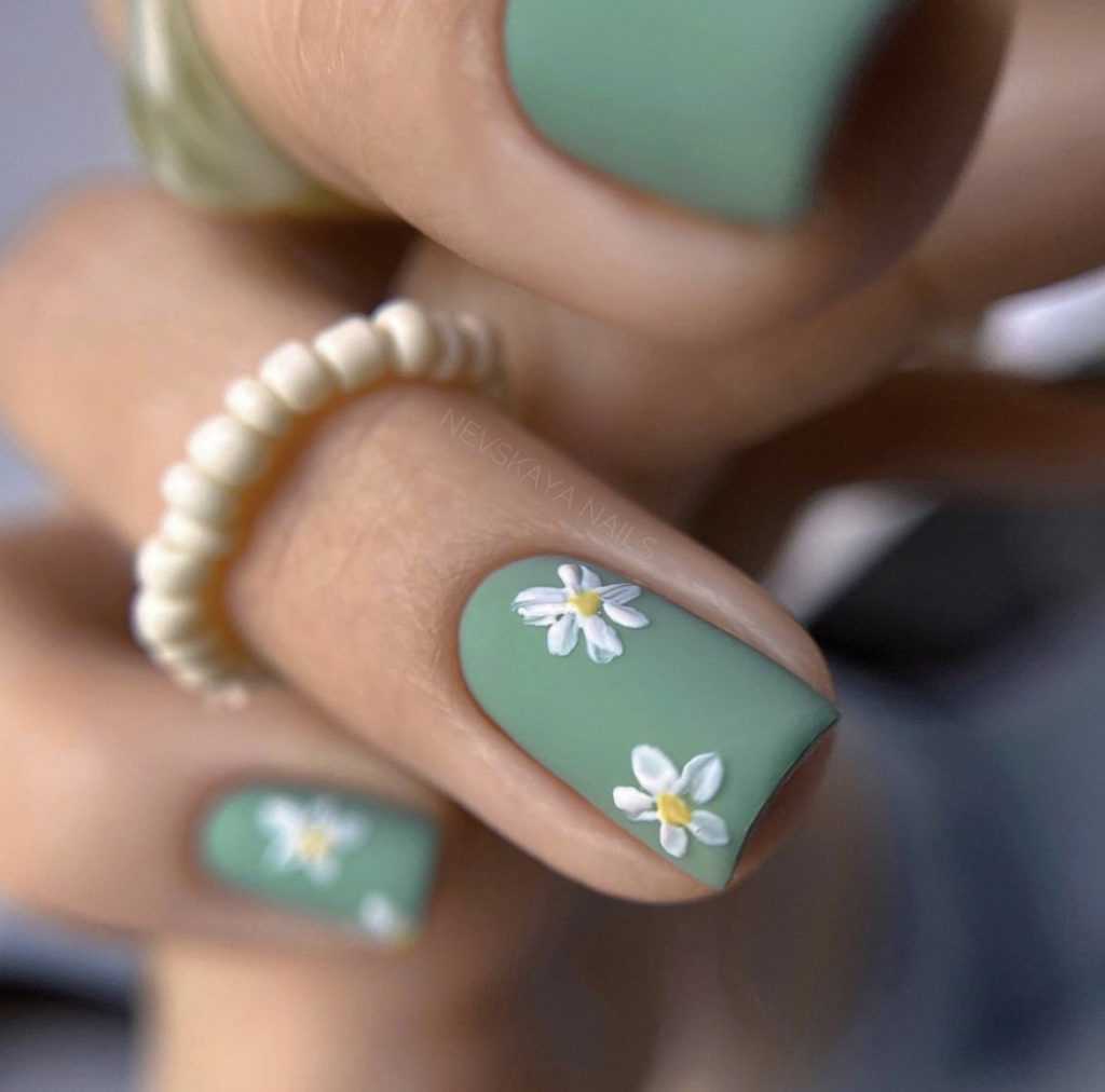 В этом сезоне цветы, особенно маргаритки, заполонили ваш маникюр. Несомненно, такой способ росписи ногтей очень свежий и веселый. Эти цветы — хорошее начало для того, чтобы начать получать удовольствие от росписи ногтей.