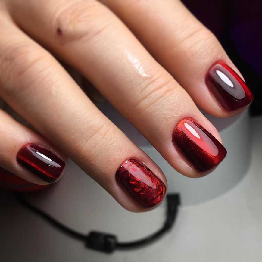 С таким великолепным цветом, как темно-красный, существует множество способов сделать дизайн уникальным и привлекающим внимание. Такой маникюр часто выбирают деловые женщины, потому что он гармонично смотрится с одеждой в офисном стиле