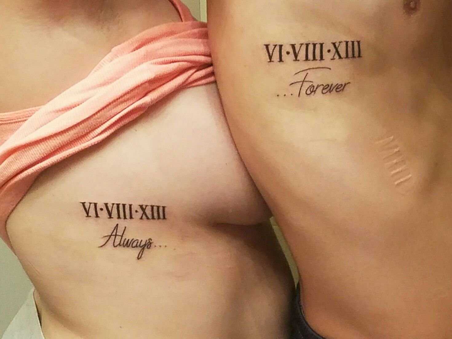 - Дата свадьбы. Такую тату чаще всего делают молодожены. Запечатлевают свою любовь не только штампом в паспорте, но и штампом на теле. Этот символ любви не только выражает преданность, но еще и долгие годы поможет не забыть дату дня образование новой ячейки общества.