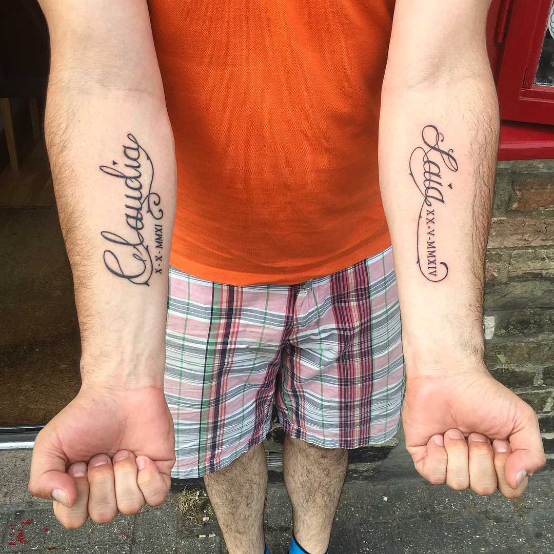 - Надпись в виде даты. Начиная от даты рождения или заканчивая датой свадьбы, у каждого человека может иметься значимая дата, которая и становится нательным рисунком, который станет вечным напоминанием.