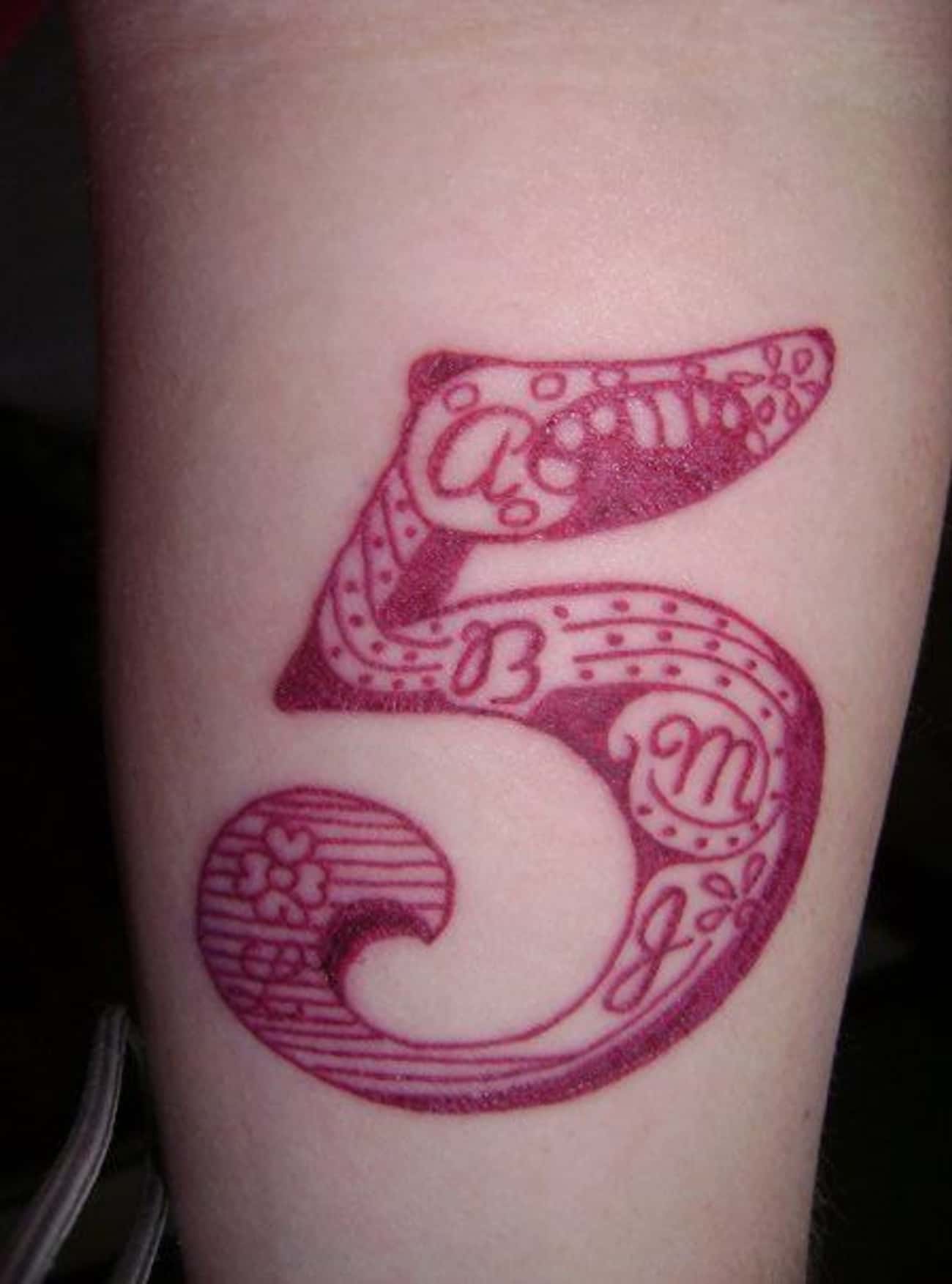 Число «5»-придаст уверенность и стабильность. Люди с такой татуировкой – хорошие семьянины и верные друзья.