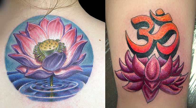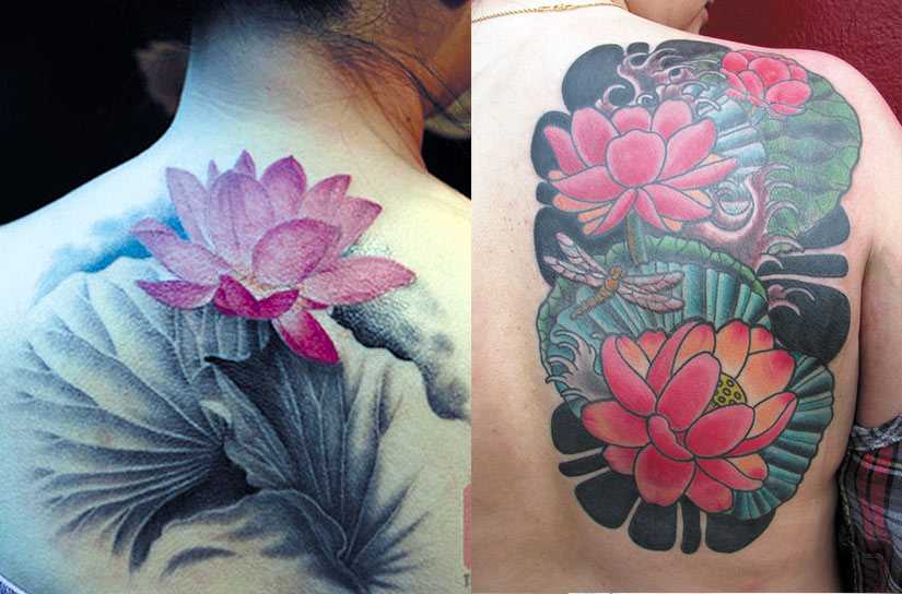 С лева тату лотоса в Китайском стиле с права в Японском стиле