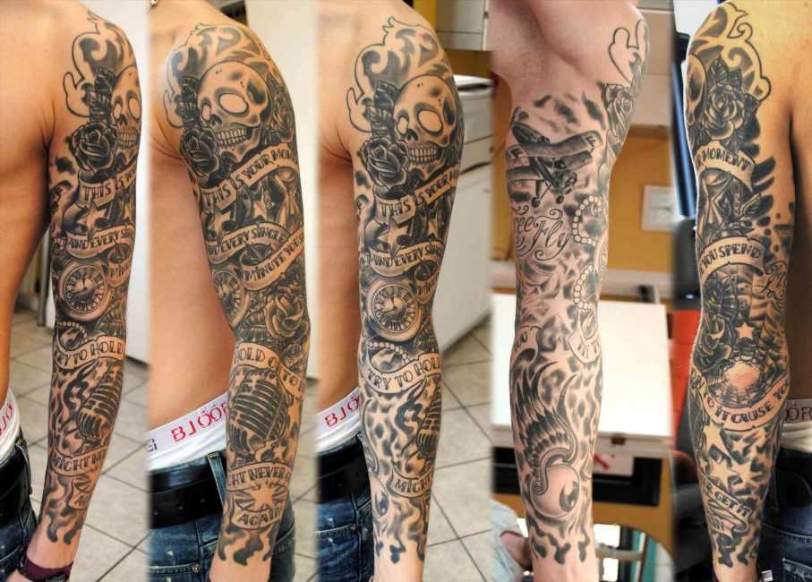 Для мужского населения планеты татуировка вряд ли является способом украсить себя. Согласно статистике, большинство мужчин набивают рисунки для демонстрации своих жизненных принципов и устоев. Парни любят делать громкие надписи, изображения грозных животных, символы и знаки, несущие определенный контекст.