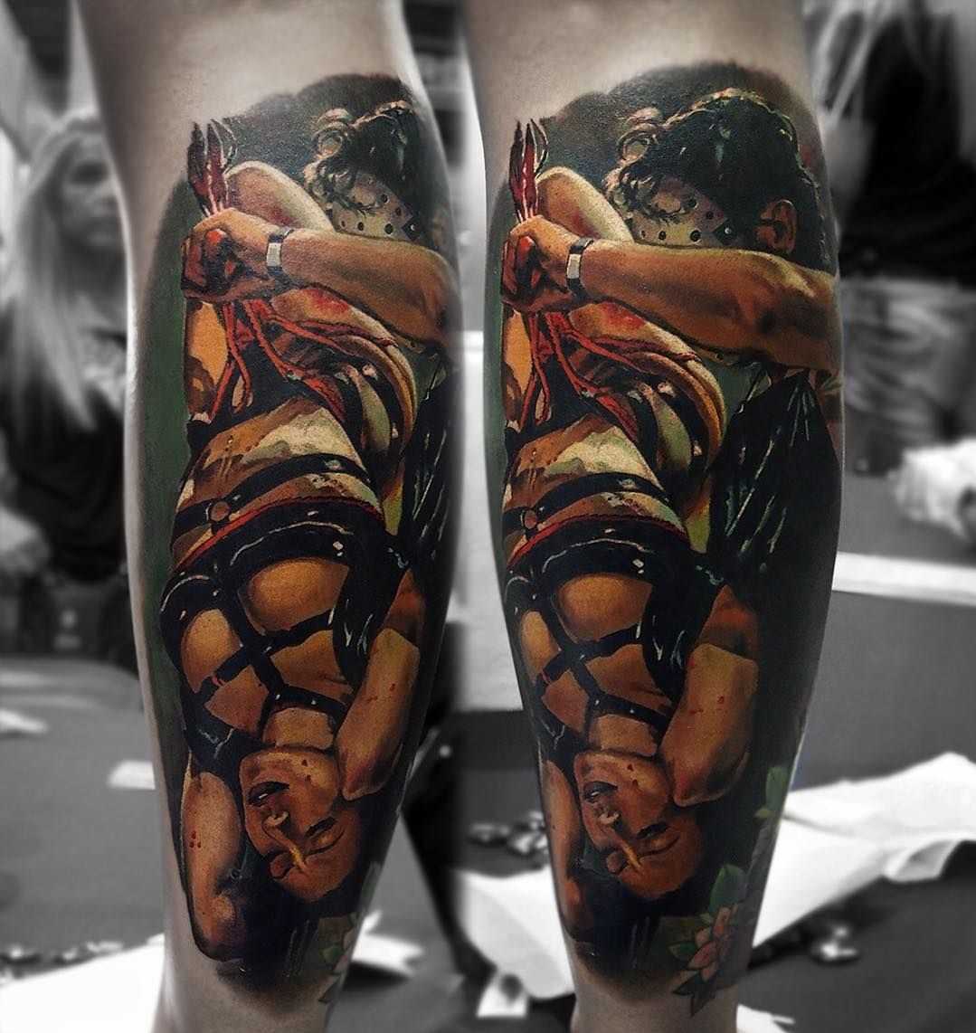 А теперь идем дальше. Удивительная trash polka! Она создана для масштабных и ярких работ. Сам концепт уникален и в нем всегда есть место для эксперимента. Достаточно вспомнить недавние тату фестивали: треш полька была там представлена во всем своем великолепии. Причем, как в чистом виде, так и в сочетаниях с разными стилями: орнаментал, лайнворк, реализм. И, конечно, чем крупнее рисунок, тем интереснее раскрывается идея тату. Смотрятся они великолепно, на радость своим обладателям!