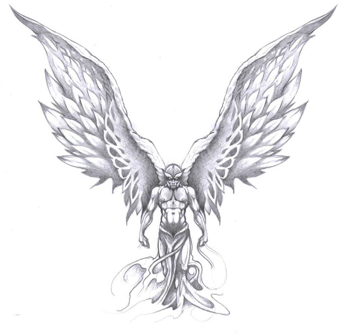 Многие люди наносят на своё тело татуировку, желая выделиться среди мрачности и повседневности жизни. Определяясь с рисунком для нательного изображения, человек исходит из своих желаний, эмоций, жизненных устоев. Очень большой популярностью среди тату-образов пользуется ангел. Ангелы присутствуют во многих религиях и являются посланниками между людьми и Богами. Они наделены сверхъестественными возможностями и представляют собой символы веры, защиты и невинности. Нанесенный на тело эскиз ангела открывает нам владельца, как человека верующего в Бога и просящего у него защиты от жизненных невзгод.